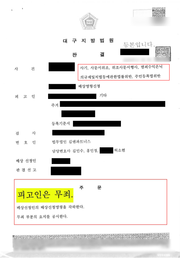 A 씨는 저희 법무법인의 도움을 받아 최종적으로 「무죄」 판결을 받았습니다.