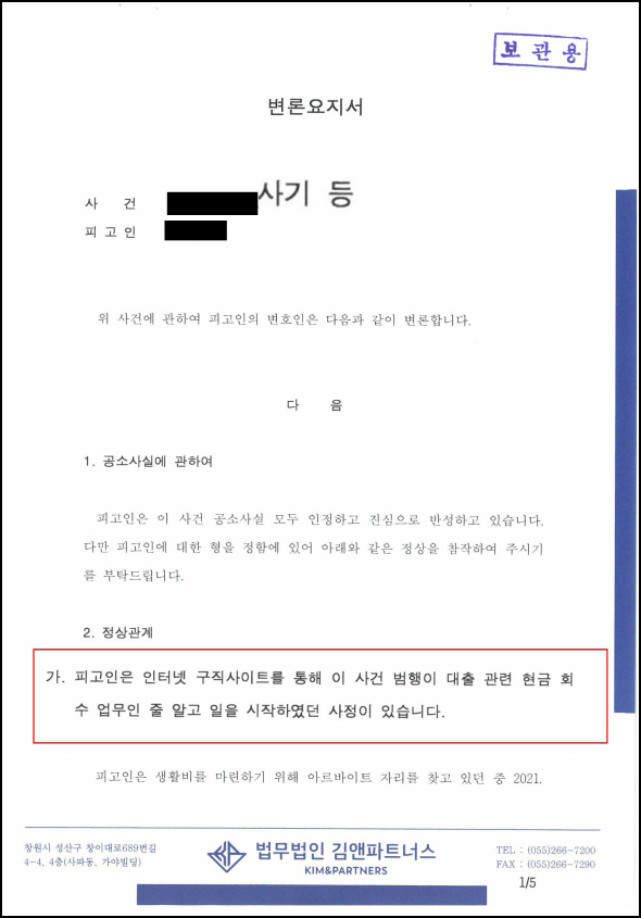 의뢰인은 해당 사안의 업무를 시작하기 전 피싱 범죄일 수도 있겠다는 의심을 했던 사정이 있었기에, 미필적 고의가 성립돼 범죄 사실을 부인하기 어려웠습니다.