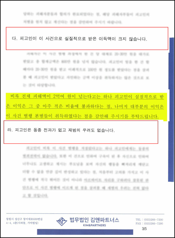 이렇듯 의뢰인에게 지급된 범행 수익금은 적은 수준이라는 점을 주장하였습니다.