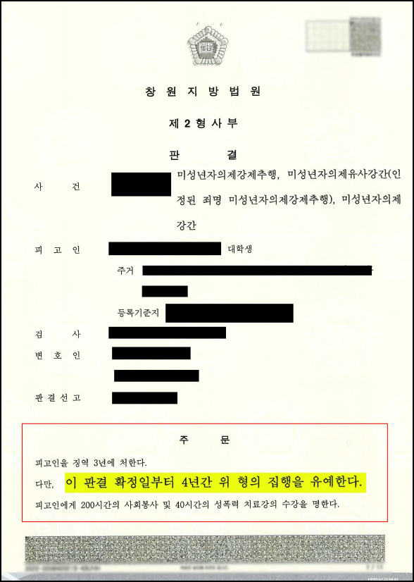 당시 피해자의 나이가 13세 이상에서 16세 미만이었기에, 미성년자의제강간죄가 성립된 사건이었는데요.