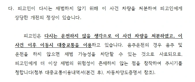 운전할 차량 자체가 없어졌기에 음주운전을 할 가능성이 없고, 이러한 사정들을 최대한 참작해 주실 것을 재판부에 호소하였습니다.