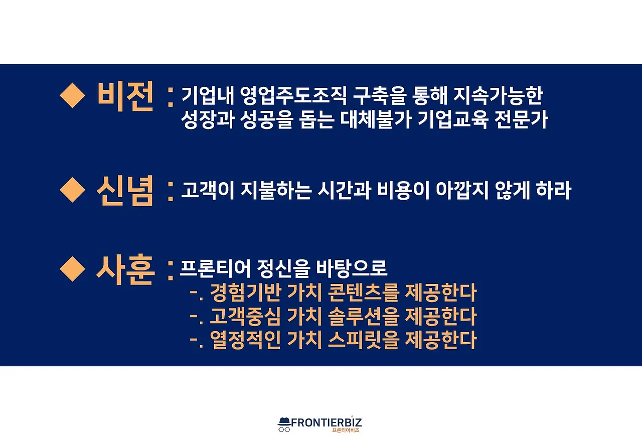 ▶비전 : 기업 내 영업주도조직 구축을 통해 지속가능한 성장과 성공을 돕는 대체불가 기업교육 전문가