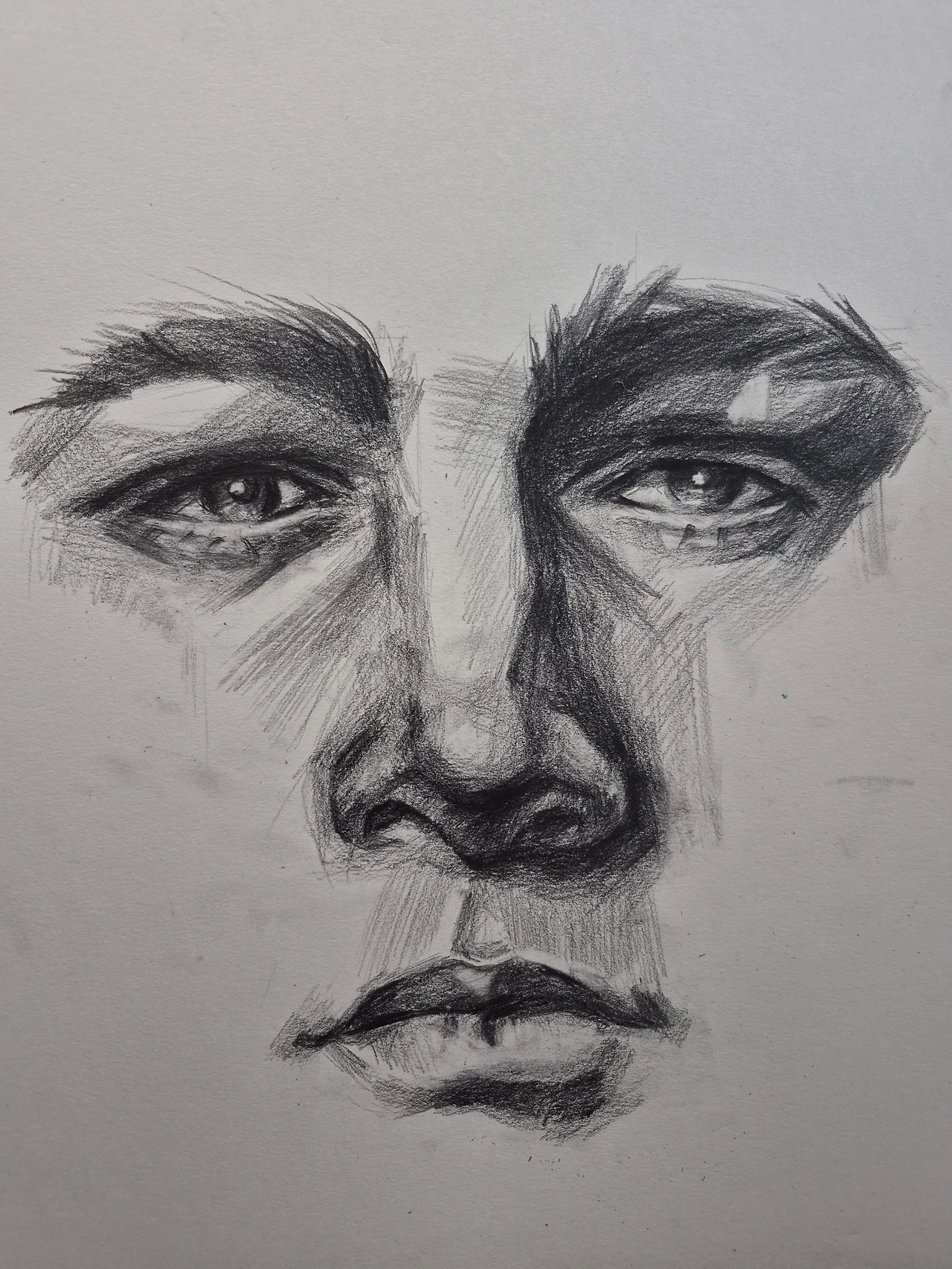 그럼에도 불구하고 포기하지 않고 명암을 하나씩 더해 나갔다. 그러자 흐릿한 선 사이로 서서히 형태가 드러나기 시작했다. 어렴풋이 무언가가 이루어지려는 듯한 순간, 비로소 희미한 안도감이 찾아왔다.