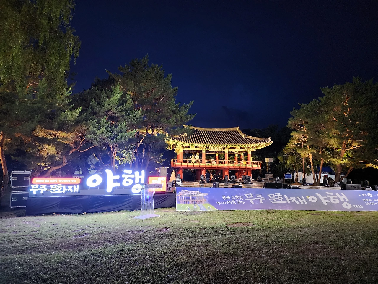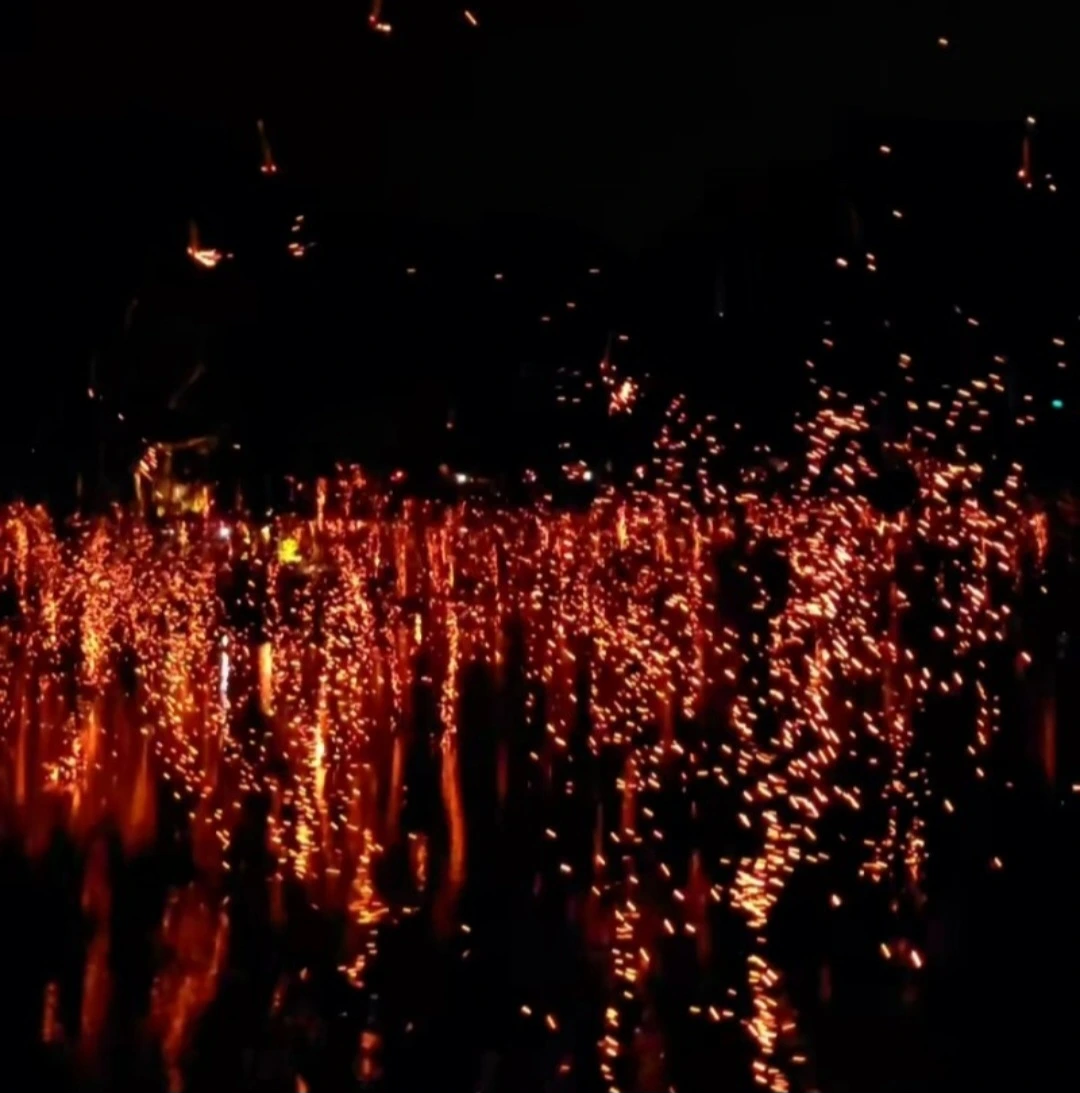 무주야행은 야경. 야사. 야설. 야로. 야숙. 야화, 야식이라는 8개의 테마로 이루어진 무주만의 특색 있는 지역문화행사이다. 그중 우리는 준이에게 낙화놀이를 보여주고 싶었다. "낙화놀이"는 줄불놀이라고도 불리는 우리나라의 전통민속행사로 나도 이곳에서 몇 년 전 처음 보았다. 사금파리. 숯가루. 마른 쑥, 소금을 넣어 만든 낙화봉을 가는 줄에 매달아 연못이나 호수 위에 띄우면, 타닥타닥 불타는 소리와 함께 비가 내리 듯 불꽃이 물 위로 떨어진다. 물 위에 반영되는 불꽃 비가 너무 아름답다. 마치 폭포에서 물이 떨어지듯 불이 내려온다.