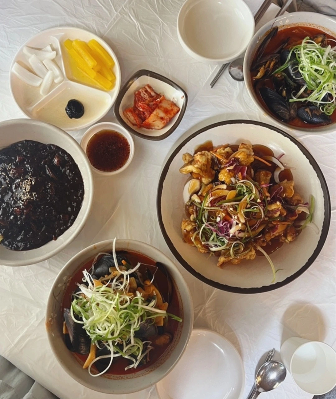 우리가 즐기려고 하는 축제시간이 8시 이후라 시간여유가 있어 저녁을 먼저 먹었다. 오늘 메뉴는 탕수육과 짜장면이다. 무주는 천마를 재배하는 농가가 많다. 지역 특산물이다. 천마는 고구마 같이 생겨 가루나 환으로 만들어 먹으면 몸에 좋다고 한다. 무엇보다 아이들이 좋아하는 게 짜장면이지 않던가. 준이가 맛있게 먹어 맛집임을 증명했다. 짜장면은 처음 먹어본 듯하다. 오늘은 스파게티 대신 짜장면으로 새롭게 입맛을 돋우어 주었다.