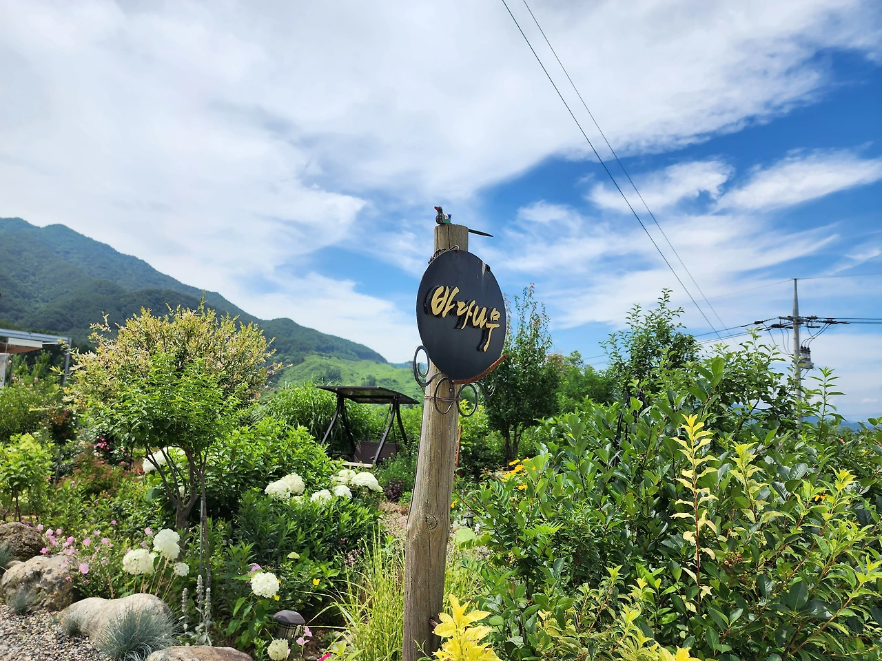 건물에 방을 얻으러 오는 사람들도, 산길을 오르기 위해 예쁜 꽃밭이 있는 시골의 세컨드하우스를 지나가는 사람들도 간판을 보면서 이름이 예쁘다며 무슨 뜻인지를 묻곤 하였다. 나는 "바다 같은 아내, 나무 같은 남편이 사는 집"이라고 소개하며 빙그레 웃었다. 그들은 빈말인지 모르지만 주인과 이름과 꽃밭이 잘 어울린다고 하였다. 돌아보니 세월이라는 이름 속에서 바다나무는 이름값 하느라고 무던히도 애쓰면서 서로가 닮아진 것 같다.