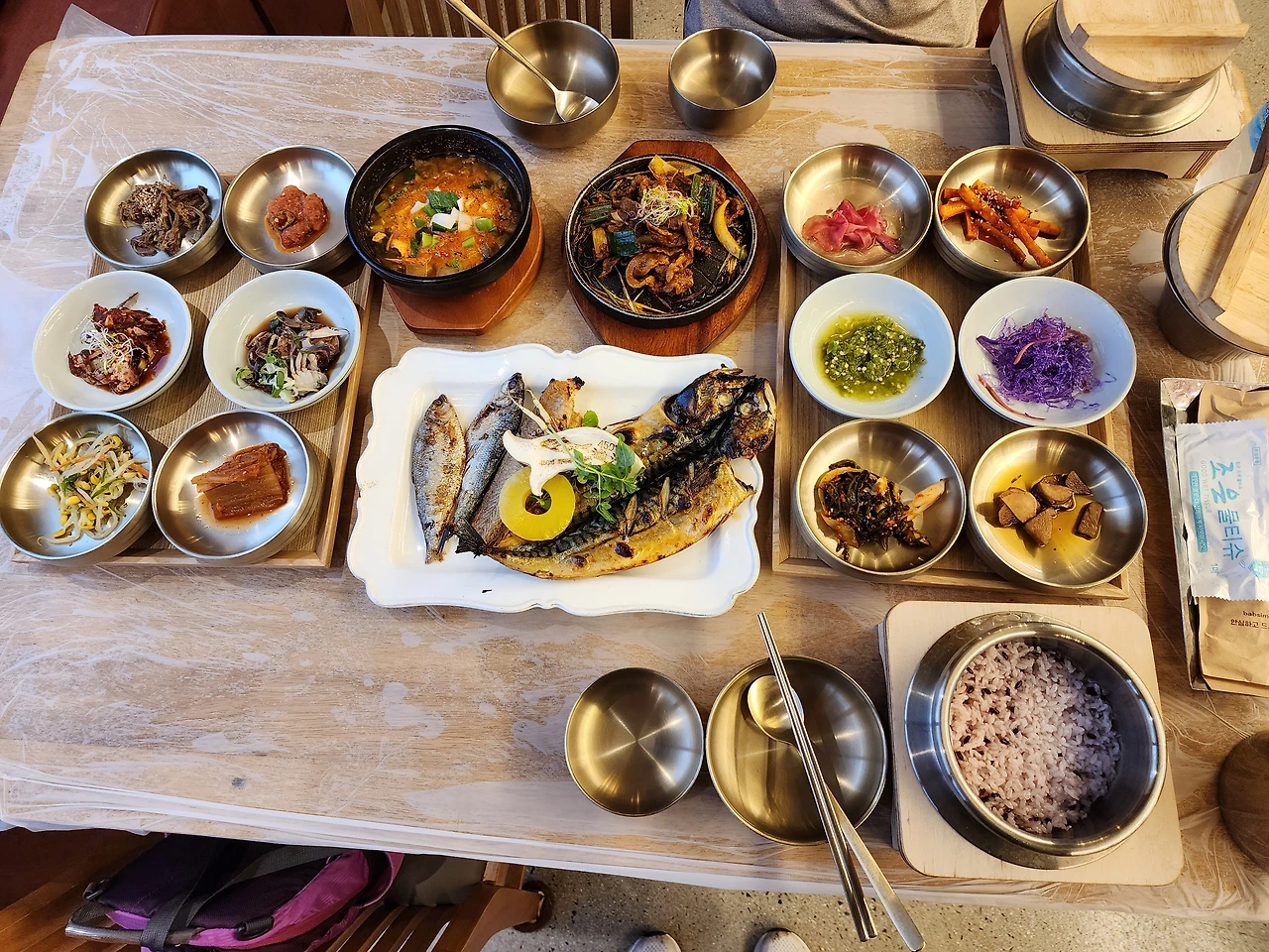 역시 나서서 길을 걷고 나면 당연하게 따라오는 건 배고픔이다. 그건 양심도 체면도 없다. 그저 얼굴에서, 배에서 신호를 보내면 거부할 수 없는 몸짓으로 응수해야 한다. 산양산삼으로 숙성시킨 생선을 화덕으로 구워 준다는 생선구이집으로 갔다. 평일이고 날씨도 오락가락한 상태라 그런지 한가했다. 주말에는 얼마나 사람이 많은지 당일 사전예약은 받지 않는다고 한다. 대기등록 예약시스템(테이블링)을 해야 식사를 할 수 있는 곳이다. 별로 달갑지 않은 시스템이지만 먹고살려면 이용해야 한다. 오늘은 사람이 많지 않아 바로 식사를 할 수 있었다.