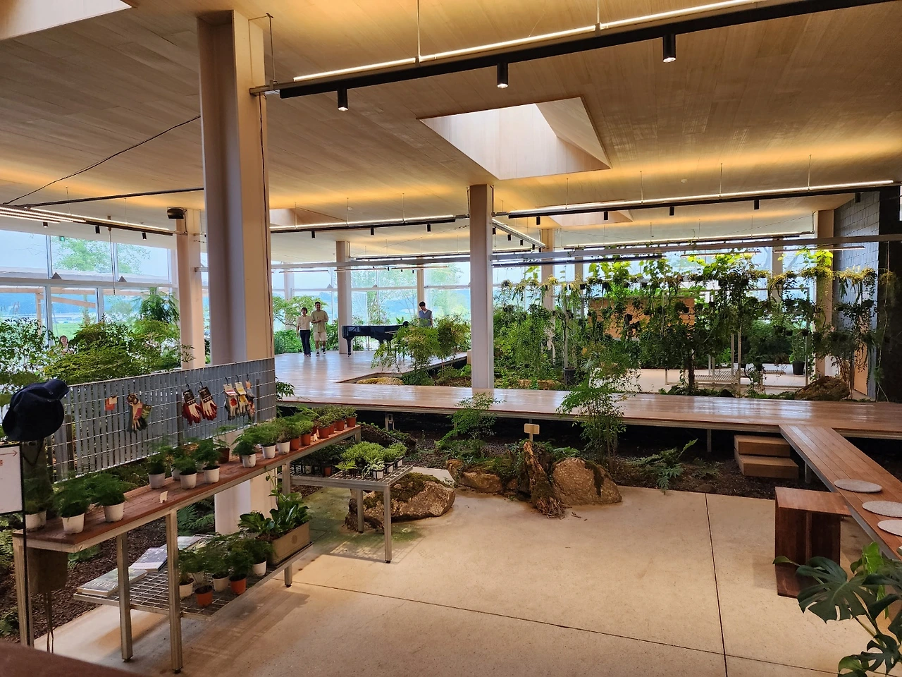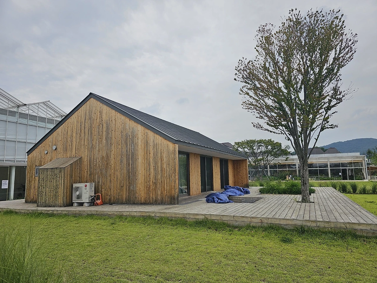 정원식물이 가득한 실내카페와 북카페. 그리고 야외로 조성된 공간은 또 다른 볼거리와 인식의 변화를 일으키기에 충분했다. 예쁘고 조용한 실내의 숲정원에서 나무향기 맡으며 커피를 마시고 있는 기분이었다. 실외정원에는 산책길과 무인양품과 하라켄야의 콜라보로 만든 양의 집과 몇 개의 모듈러 주택들이 전시되어 있었다. 심플한 농가주택들이다. 최근 티브이의 건축가 탐구나 유튜브에서 관심 있게 보고 있는 농막이나 이동식 주택들이 전시되어 있었다. 요즘 우리들의 관심사였다. 별도의 건물로 마련된 북카페도 농업과 건축, 디자인에 관련된 책들이 즐비하여 딸과 사위는 잠시 그곳에서 머물며 책을 보고 육아에서 벗어난 시간을 즐기기도 했다. 물론 준이는 우리와 산책을 하며 시간을 즐겁게 보내고 있었고.