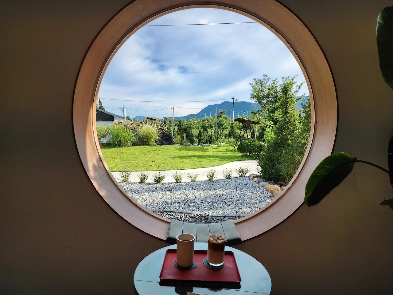 이제 잠시 앉을자리가 필요했다. 다리가 쉼을 요구하고 입에서 카페인을 요구한다. 창문이 아담하고 단층으로 소박하게 지은 카페로 갔다. 아기자기한 정원이 정겨운 카페이다. 사람이 없는 탓에 주인이 마지막 여름을 쫒고 있는 듯했다. 우리가 무료함을 깬 반가운 손님인지, 안락한 휴식을 깬 눈치 없는 손님인지는 알 수 없지만 조용히 쉴 수 있는 아늑한 공간이라 좋았다. 커피 한 모금을 마시며 나도 모르게 내뱉은 "휴"소리가 "휴(休)"이길 바랐다. 평온한 휴식처이다. 이제는 세상의 중심에서 비껴 나와 가끔은 이렇게 예정에 없던 사잇길에서 잠시 쉬어 가기도 한다. 어쩌면 앞으로 이 길이 더 편안하고 안락한 길이 될지도 모른다.