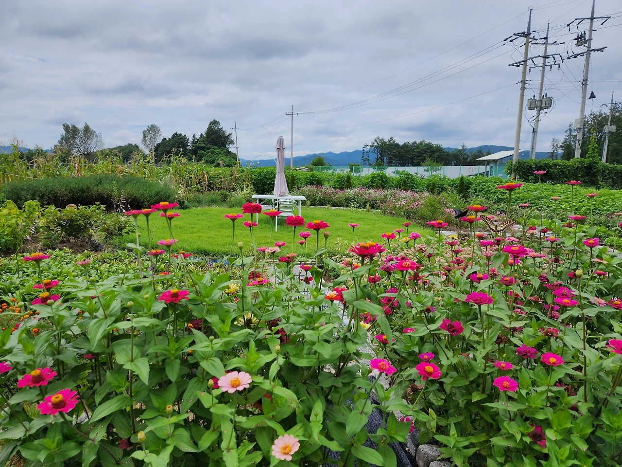 아침저녁으로 제법 쌀쌀하다. 여름이 시원했던 만큼 가을도 빨리 오나 보다. 이곳은 날망집이라 아침, 저녁으론 긴팔옷을 입어야 할 만큼 기온차가 심하다. 전형적인 가을날씨다.바다나무 농원에는 백일홍이무리 지어 들판을 메우고 있다. 아마 준이가 왔더라면 색깔 찾기 게임을 하자고 숨바꼭질하며 뛰어놀았을 것 같다.
