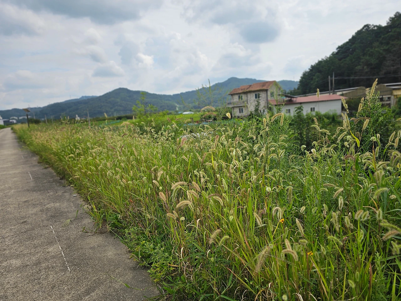 아침바람이 코끝을 스치고 지나간다. 송골송골 맺혔던 이마의 땀방울 떨어진 자리가 바람에 시원하다. 밤의 풍경과는 다른 아침의 풍경은 뭔가 신선하다. 생동감이 있다. 지난번 금계국으로 황홀했던 들녘을 지나간다. 이번엔 금계국 대신 수크령이 아름답게 피어 가을로 가는 길목을 안내한다. 초록 수크령과 붉은 수크령이 혼재되어 단풍이 든 듯하다. 바람의 흔들림에 물결이 인다.