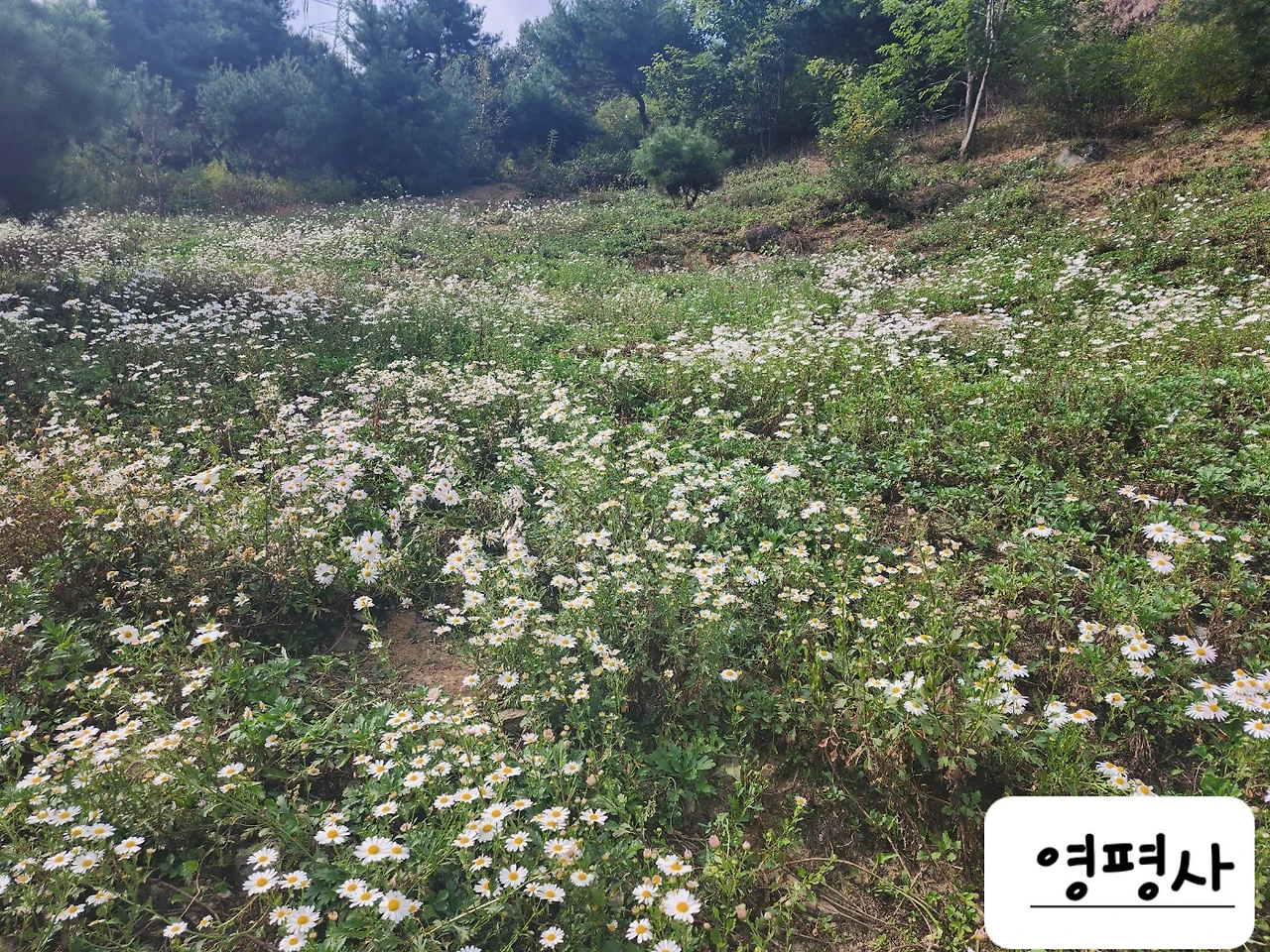 준이는 떠나고 구절초에 대한 아쉬움이 남아 장군산을 품고 있는 3만 평 정도의 꽃단지가 있는 영평사로 향했다. 이름 있는 구절초 군락지라 커다란 산사음악회까지 하는 절이다. 이미 축제에 온 사람들이 많아 차량을 통제하고 주차장에서 셔틀버스를 운영하고 있었다. 이곳의 구절초는 자생적으로 피어난 것이 아니라 영평사 주지스님(환성스님)의 구절초 사랑에서 비롯됐다. 산등성이에 피어난 구절초의 청아하고 순수한 모습에 반해 해를 거듭하며 심고 정성껏 가꾼 결과로 무성한 군락지를 이뤄 관광지가 된 곳이다.