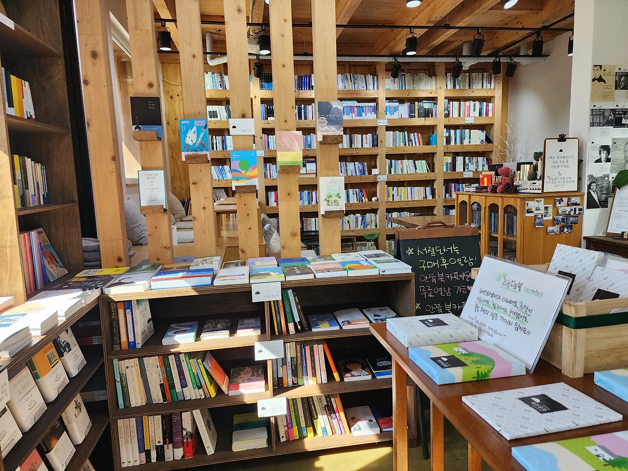 브런치카페를 나오면서 다음일정과 시간적인 여유가 있기에 가까이 있는 책방에 갔다. 여성전용 북스테이와 함께 운영하고 있는 작은 독립서점이다. 독립서점은 대규모 자본이나 큰 유통망에 의지하지 않고 서점 주인의 취향대로 꾸며진 작은 서점이다. 서점 주인의 취향이 구비하는 도서의 기준이 되다 보니 서점별로 특정 영역에 특화한 경우가 많다.문학의 동향을 살펴보기엔 대형서점이 좋지만 평상시 난 작지만 아담하고 정겨운 독립서점을 좋아한다.