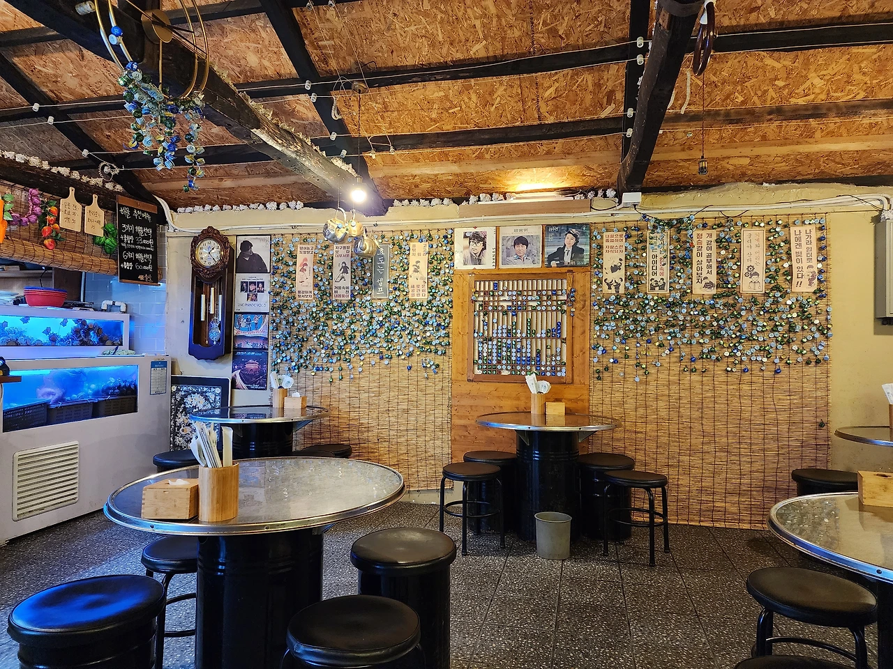 제주 끝에서 끝을 오갔더니 다소 피곤했다. 돌아오는 길에 남편은 저녁을 한식, 중식, 일식, 양식 등 원하는 밥상을 준비해 주겠다고 메뉴를 고르라고 한다. 생일상을 한 상 차려줄 모양이다. 나는 그 많은 밥상중에 술상을 한 상 차려 달라고 했다.우리는 통골뱅이찜과 신선한 해산물 회를 주는 실내 포장마차로 갔다. 내 생일날의 특별한 식사를 아주 오래된 추억이 있는 곳에서 하고 싶었다. 남편은 그래도 이름 있는 날인데 후회하지 않겠느냐고 재차 물었지만 내겐 화려한 밥상이 그리 큰 의미가 되지 않았다. 참으로 오랜만에 가본 포장마차가 너무도 정겨웠다. 그것도 작은 딸의 이름을 빌린 이로운 술상이. 벽에 붙어있는 가수들의 젊은 사진과 오래된 표어들이 지난 세월들을느끼게 해 주었다. 저물어가는 인생잔을 기울이며 앞으로 멋지게 익어가자고 약속해 본다.