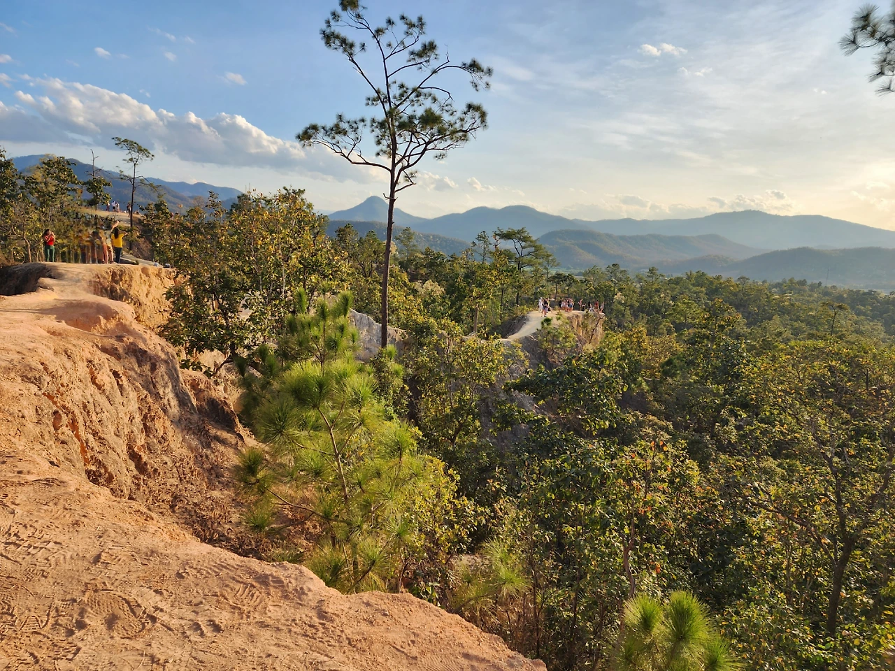마지막 코스는 빠이에서 가장 유명한 흙더미로 만들어진 좁지만 아름다운 "빠이 캐년"이다. TV에도 많이 나와 관광객들에게는 가장 핫한 지역이다. 일몰이 아름다운 곳으로 주변이 산으로 둘러싸인 아슬아슬한 낭떠러지. 그야말로 절경이다. 아쉽게도 언제부턴가 고소공포증이 생긴 나로서는 그 길을 건너갈 수가 없어 아쉬웠다. 아찔한 아래를 내려다보지 말아야 하는데. 그러나 보는 것만으로도 충분히 신비롭고 아름다웠다. 하늘과 구름과 자연이 어우러진 깊은 협곡에서 많은 사람들이 인생샷을 찍었다. 어쩌면 이곳은 빠이에서만 볼 수 있는 특별함이었는지도 모른다.
