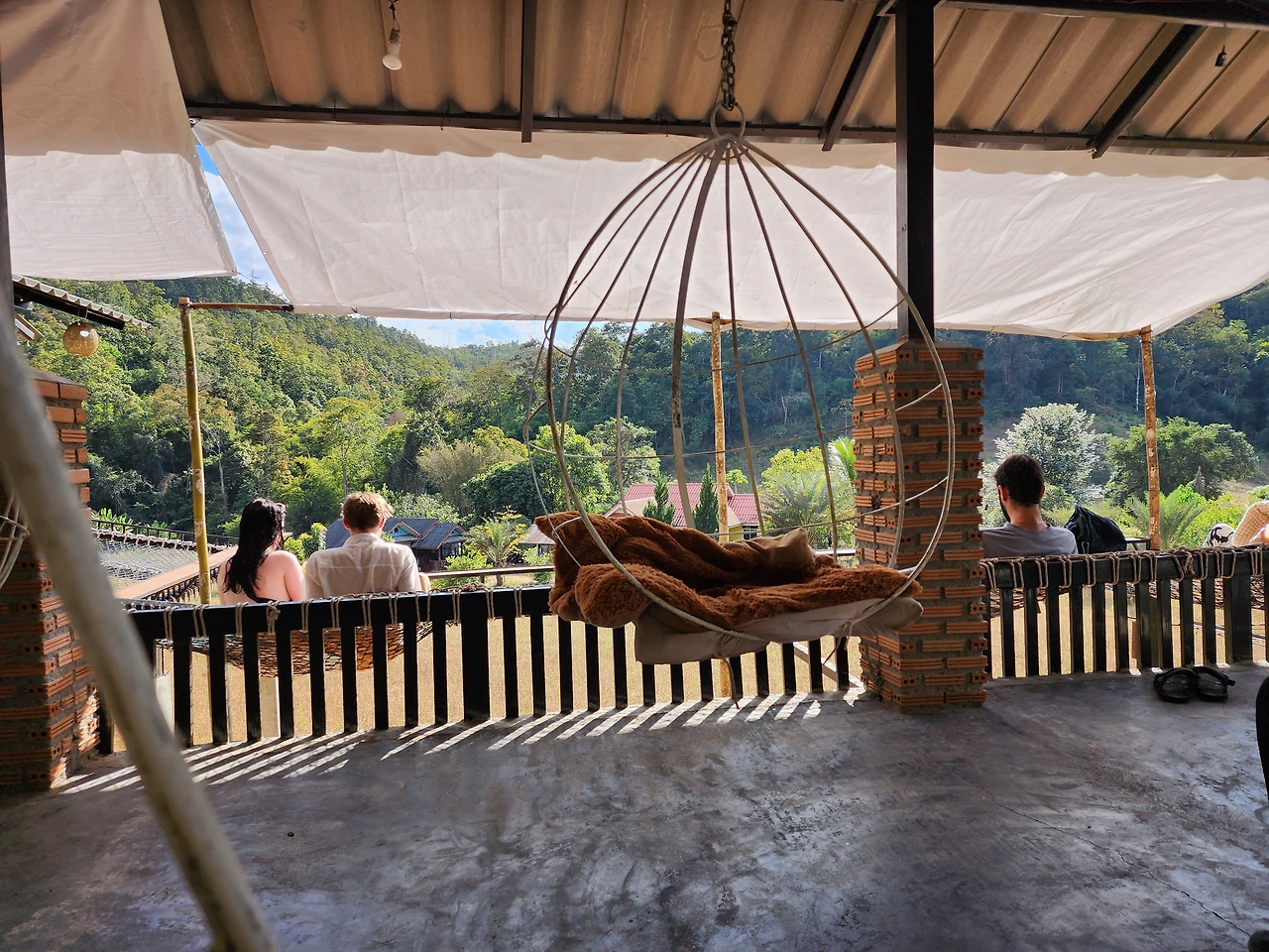 잠시 후 우리는 흔들거리는 둥근 대나무 의자에 앉아서 차를 마시거나 높은 그늘망에 누워서 자유롭게 풍경을 감상하는 카페에서 휴식을 즐겼다. 이곳도 관광코스의 하나로 다소 이색적이다. 그저 시원한 음료수를 마시며 주어진 시간 안에서 자유롭게 쉬면 된다. 다음 여행지가 일몰을 보는 곳이라 시간적으로 여유가 있었다. 일일투어 프로그램이 좋고 나쁘고를 떠나 아름다운 빠이를 여유롭고 편안하게 관광할 수 있었다.