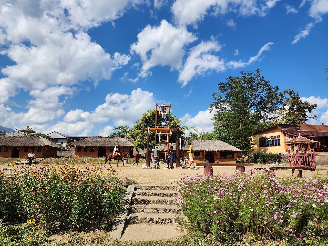 "White Budha"라고 커다란 하얀 불상이 있는 곳을 탐방했다. 태국이 불교국가라 워낙 사원이 여기저기 많기에 시간이 지나면서 커다란 부처님도 약간 신비감은 덜해졌지만 경건한 마음은 들었다. 다음은 "Waterfall"로 갔다. Morpang 폭포에서 시원한 물줄기가 떨어지는 계곡이다. 외국인들은 그곳에서 수영도 하고 물놀이도 하지만 우리는 계곡산책을 했다. 잠시 후 썽태우는 과거 중국인들이 모여 살았던 "Chinese Village와 View Point"에 우리를 데려다주었다. 관광객을 위해 조성된 마을에는 커다란 회전그네가 돌고 있었다. 에버랜드에서 많이 본 아찔한 놀이기구이다. 어느 나라에나 있는 비슷한 관광지라 우리는 뷰 포인트에서 사진 몇 컷을 찍고 내려왔다.