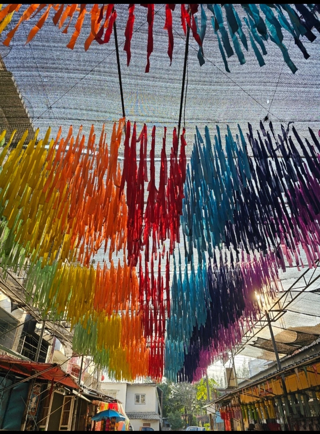 이번여행에서는 특별한 애국자는 아니지만 문득문득 한국의 상황들이 마음을 아프게 한다. 이곳 여행지가 태국이라 더욱 그럴지도 모른다. 복잡함을, 추위를 벗어나서 온 곳이 머리 한 곳에 무거움으로 자리하고 있다. 그럼에도 모순처럼 여행의 일상은 계속된다. 가는 길에 우산마을에 들렀다. 지난해 가보지 못해 아쉬움이 남는 곳이었다. 우산축제가 열리는 시기가 아니라 그런지 조용하게 상가만 관광객을 기다리고 있을 뿐이다. 조만간 우산축제가 열린다 하니 그때 다시 방문해 보리라.