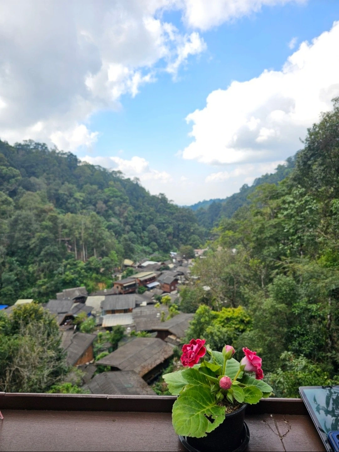 매깜퐁에서 유독 예뻤던 "카페 라비앙뷰"에 들러 아름다운 절경을 관망했다. 이곳도 역시 사람이 많아 앉을자리가 없었다. 잠시 한 바퀴 돌고 나와 한적한 산길을 산책했다. 폭포소리에 마음도 시원하다. 낡은 목조건물들, 난간에 걸쳐진 알록달록한 이불들이 정스럽게 다가들었다. 하지만 너무 붐벼 오래 머무르지 못하고 그곳을 빠져나와야만 했다. 자연이 아무리 좋아도 사람이 많다 보니 정신이 산만해져 빨리 벗어나고 싶어졌다. 오지마을이 일 년 만에 이렇게 북적이는 건 코로나 이후 여행객이 많아진 탓도 있겠지만 자연에서 힐링을 필요로 하는 사람들도 많아진 탓이리라.