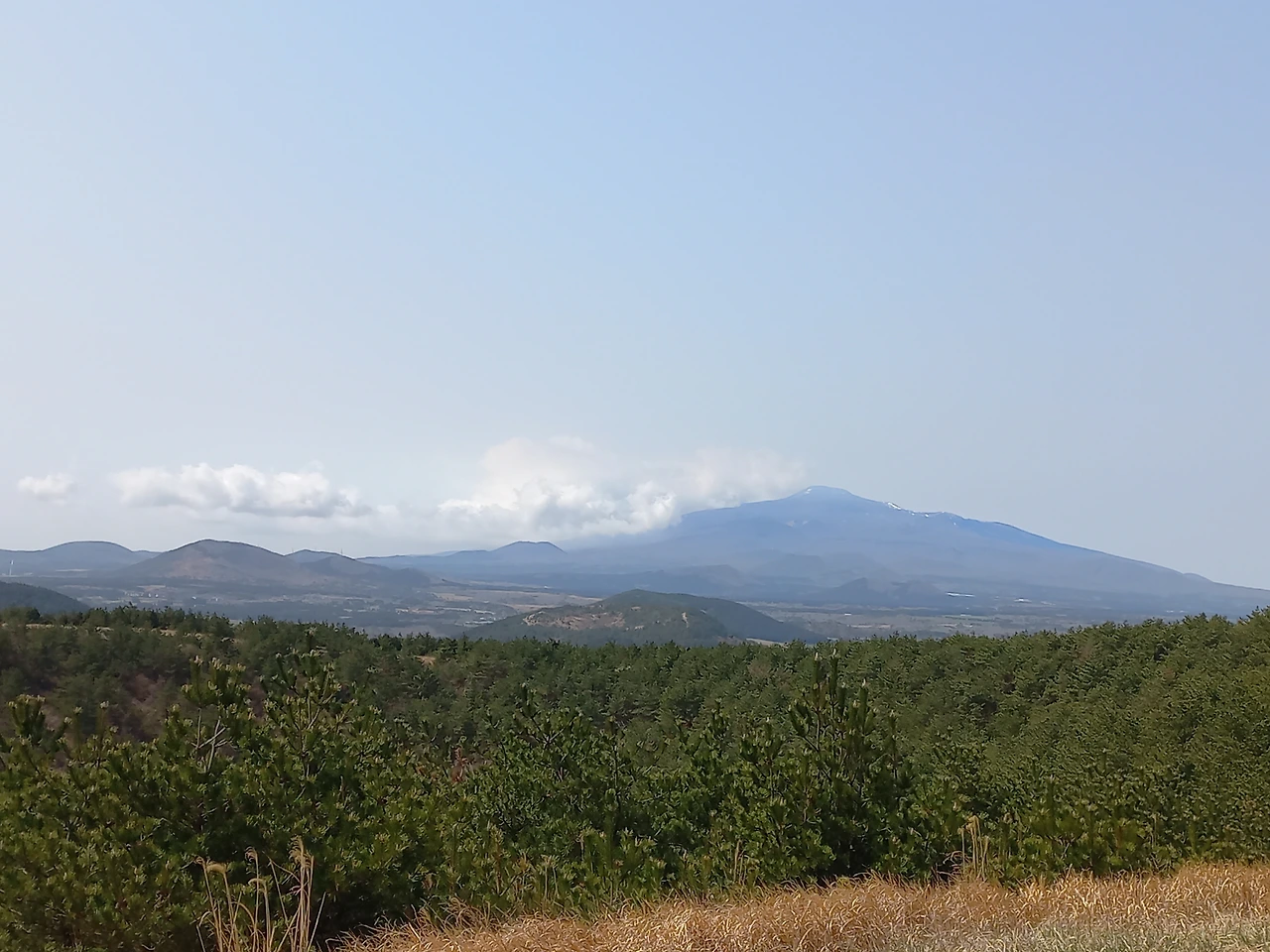 백약이 오름을 걸었다. 백약이 오름은 약초가 많이 자생한다고 하여 붙여진 이름이다. 멀리 따뜻한 꽃구름과 차가운 얼음꽃이 한라산 백록담을 가운데 두고 완연히 다른 모습으로 세상을 내려다보고 있었다. 극과 극의 공존이다. 완만한 능선을 타고 정상에 올라가니 따가운 햇살에 피부가 녹아내리는 것 같았다. 오래 머무르지 못하고 내려오다 보니 멀리 우도, 성산 일출봉이 보이는 경치가 너무 아름답다. 완만한 경사에 둥근 원뿔처럼 생긴 길을 따라 내려오다 보니 어느새 땅에 발이 닿았다. 잠시 쉬고 나서 다시 한번 오름을 올랐다.