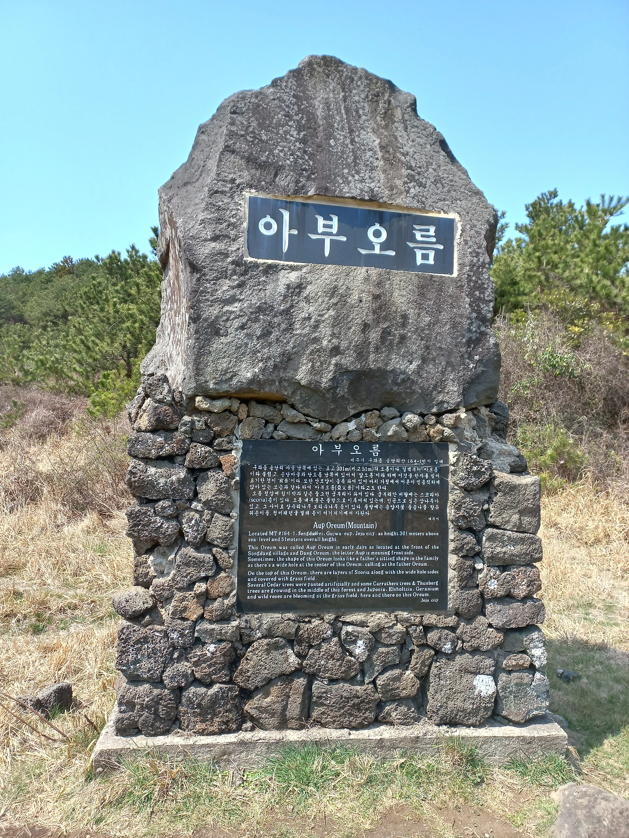 가까이에 있는 아부오름으로 갔다. 마치 어른이 좌정하고 앉아 있는 듯하여 붙여진 이름으로 완만하고 평탄한 오름이다. 백약이 오름을 다녀왔음에도 힘들지 않은 걸 보면 늘 푸른 상록수들이 힘찬 기운을 불어넣어 주었나 보다. 몇일전 갔던 새별오름과는 비교되는 푸르름이 있는 오름들이라 시원함이 느껴졌다. 작든 크든 정상에 올라가 아래를 보면 힘들었던 과정들이 눈 녹듯 녹아 내린다. 산은 역시 사람의 마음을 정화시킨다. 제주의 오름수가 360개가 넘는다고 하니 본인의 체력에 맞는 오름탐방으로 건강을 지키는 것도 좋은 관광일 듯 싶었다.