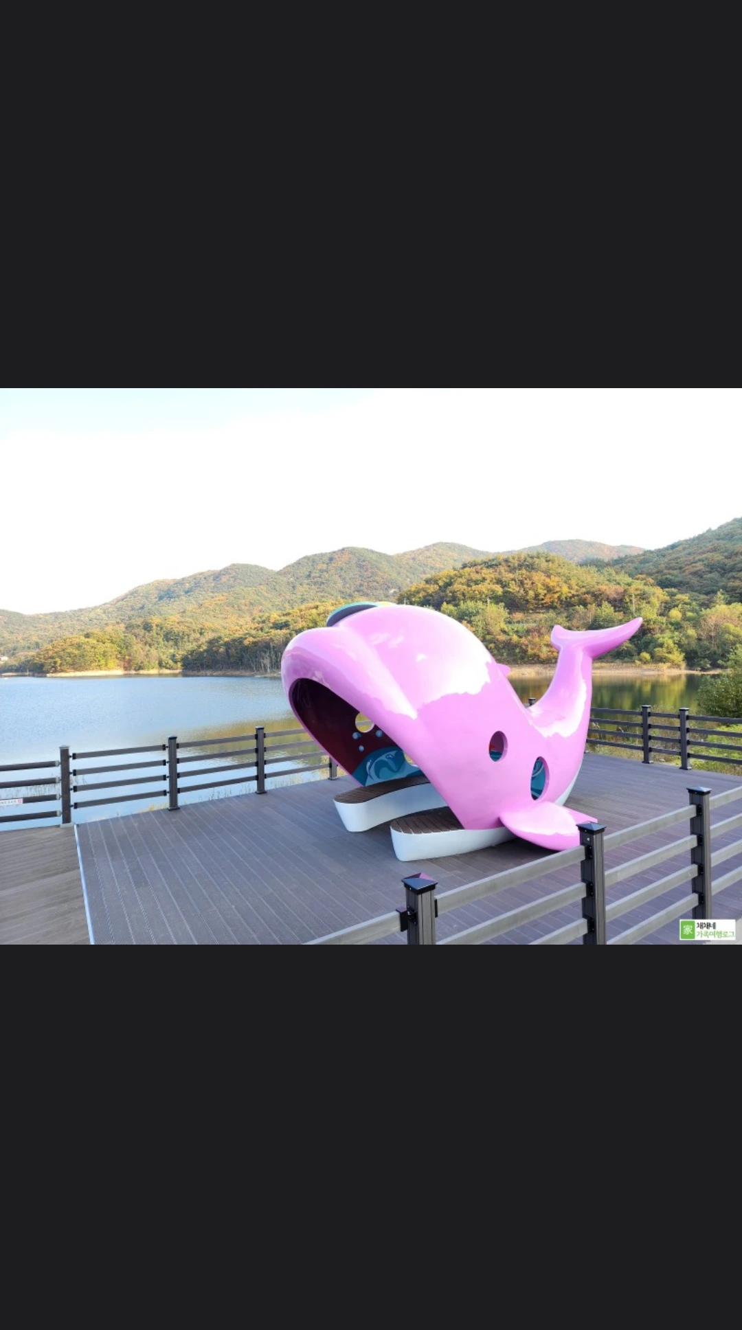 곧 해가 저물 것 같아 이름다운 경치부터 감상하기로 하였다. 둘레길을 걸을 땐 잘 모르지만 하늘에서 내려다보면 저수지가 고래형상을 하고 있다고 하여 고래마을로 불리어졌다고 한다.