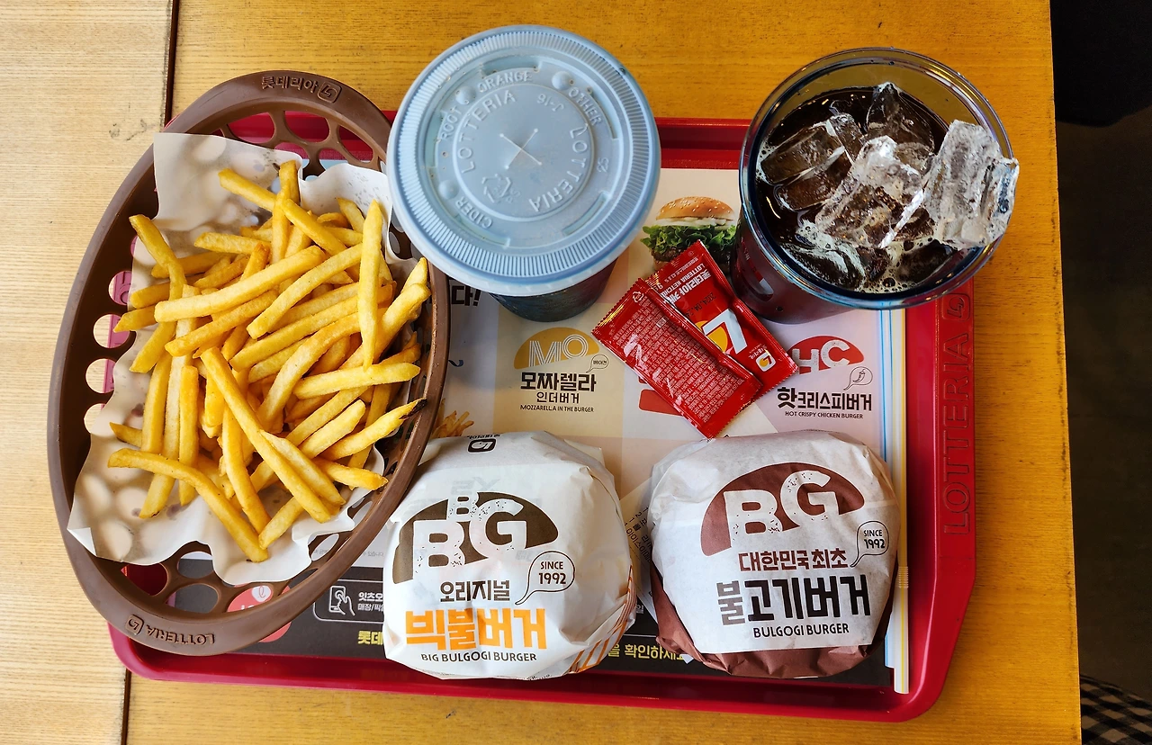 우리는 주변의 롯데리아를 들어갔다. 얼마만인가. 한 십여 년 만에 들어와 본 것 같다. 인스턴트 음식이 몸에 안 좋다는 편견과 어쩌면 젊은 사람들의 전유공간이라는 편협한 생각에서인지 그냥 지나치기만 했었다. 연애시절이나 아이들이 어릴때 가끔 와보고 둘이 일부러는 와본 기억이 없다. 오랫만에 맛본 탓이라 그런지 맛있었다. 별것 아닌 햄버거가 둘만의 오롯한 시간에 추억을 더해주었다. 간단한 한 끼 식사로 여유와 행복을 맛본다.