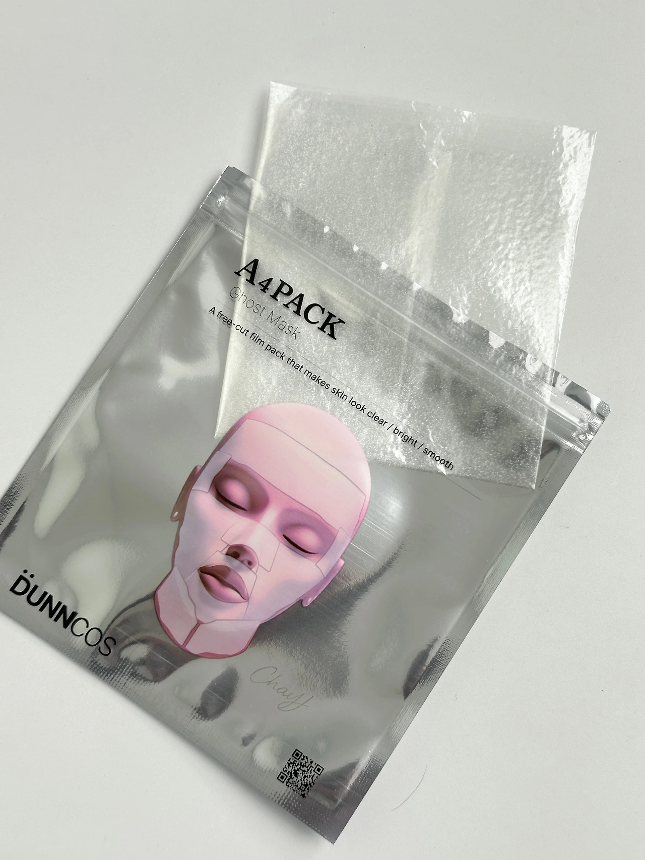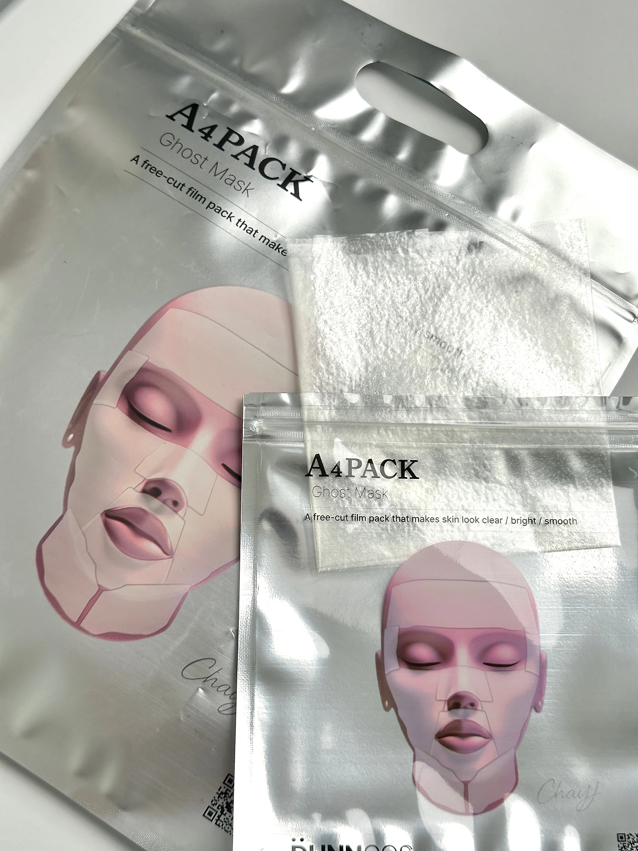 모양이 A4사이즈 크기로 접혀서 포장되어 있어, 제품명이 "A4PACK"이다. 부제로는 ghost pack(유령팩)이다. 제품을 써보면 왜 그런 이름인지 알것이다.
