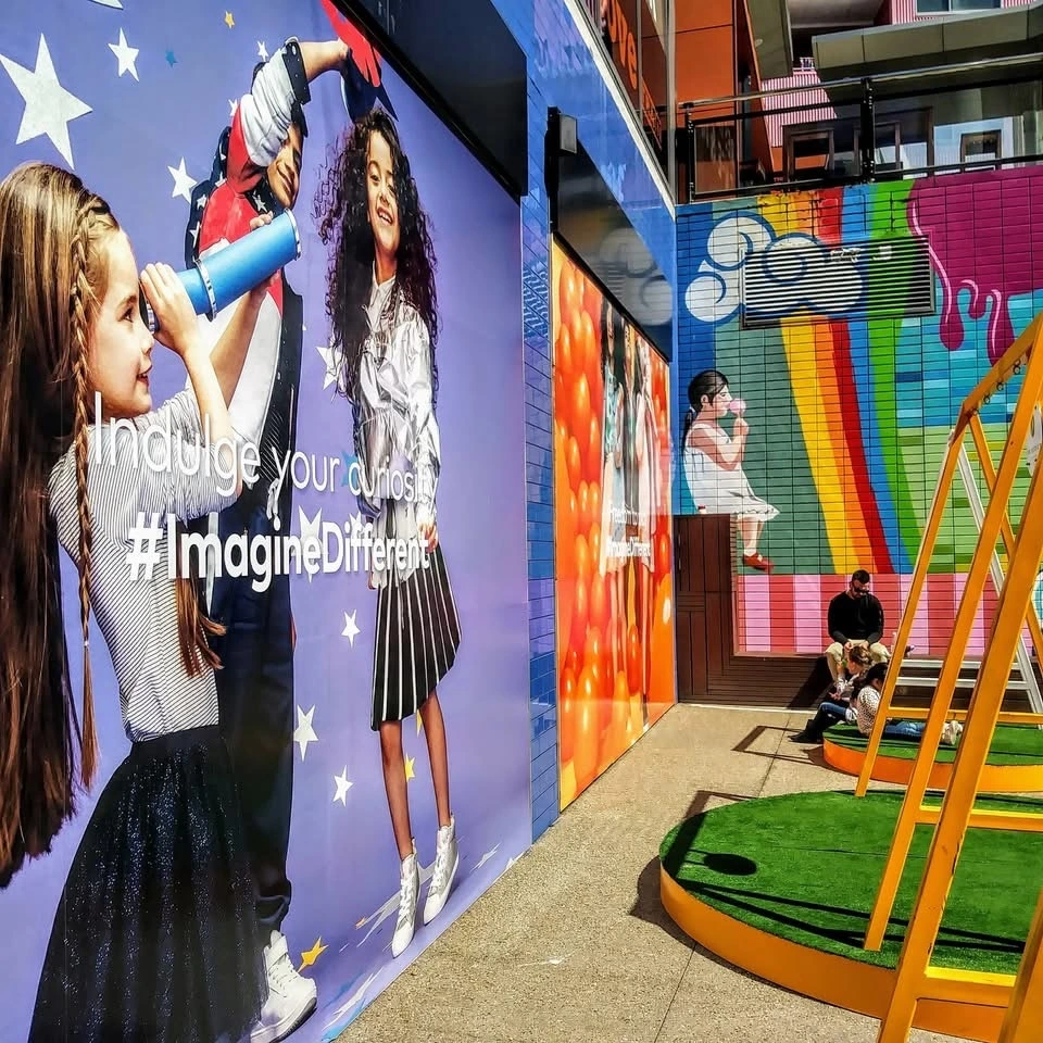 놀이동산 쇼핑몰 아케이드에도 벽화가 인테리어로 당당히 한자리를.