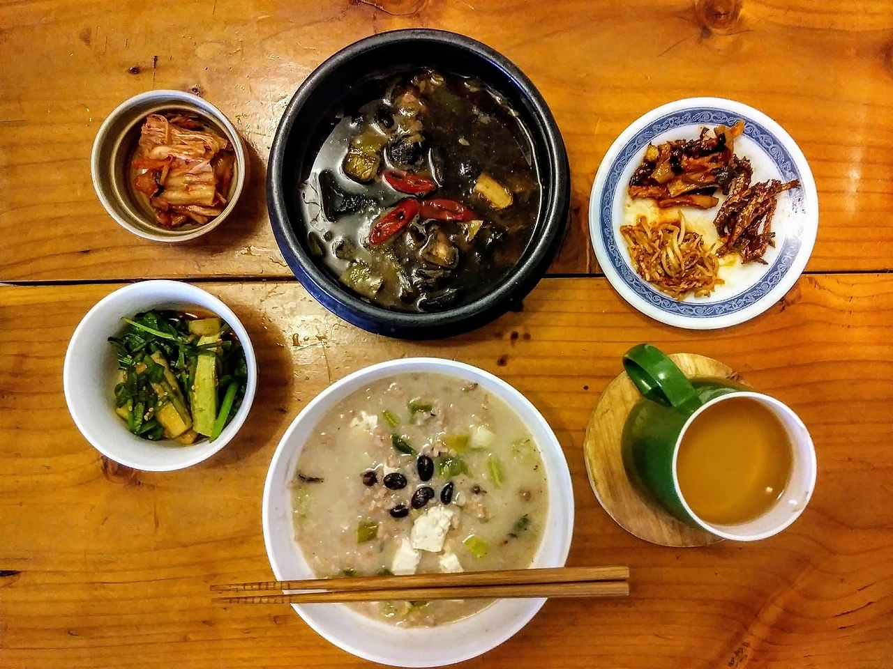 감자와 두부가 없어 호박과 표고만 넣어 된장 풀어 자작자작한 찌개를 하고, 지난번 해 먹다 남은 단호박과 한 입 남은 당근 조각에, 까맣게 잊은 채 냉동고에 던져둔 말린 취나물을 올려 밥을 했다. 시금치 남은 거로 살짝 데치거나 그대로 소금 간에 발사믹 식초 올리브 뿌려 샐러드. 냉장고에 남은 재료 이렇게 깨끗하게 비울 수 있다.