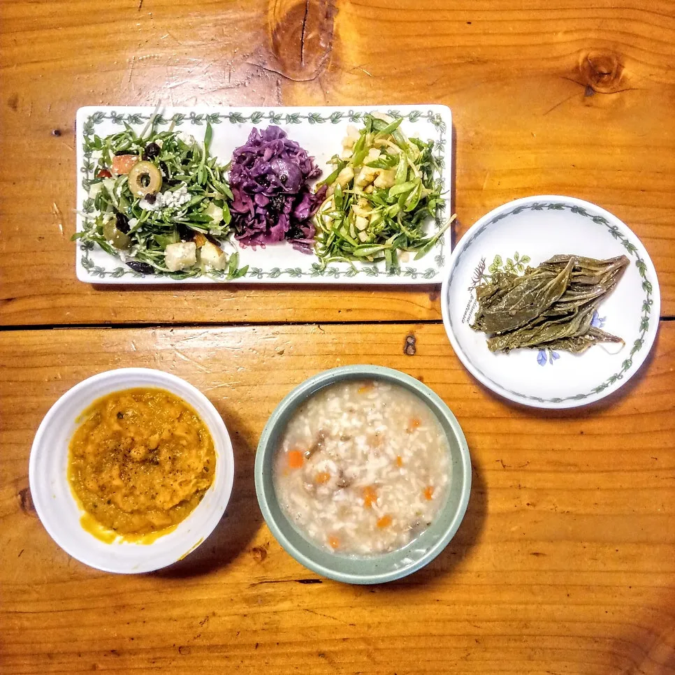 마로 따로 반찬을 만들기 너무 번거로워서 꾀를 냈다. 밥을 지을 때 마를 얹어 마밥이나 마죽을 해서 먹는다. 마트에서 파는 인스턴트 죽보다 속이 훨씬 편하다. 하지만 아무리 좋은 음식이라도 뭐든 과하면 안 좋은 법. 과유불급. 마 역시 소화력이 약한 소음인이 많이 먹음 안 좋고 더덕은 성질이 차니 둘 다 양을 조절해야 한다. 쌀죽 단호박죽에 마죽까지 했으니 다음엔 속을 보하는 좁쌀죽 흑임자죽 버섯죽 미역죽 양배추죽을 만들어봐야겠다. 심심하고 맹맹한 죽으로 끼니를 먹으려니 꾀가 는다. 죽의 신세계 입문.