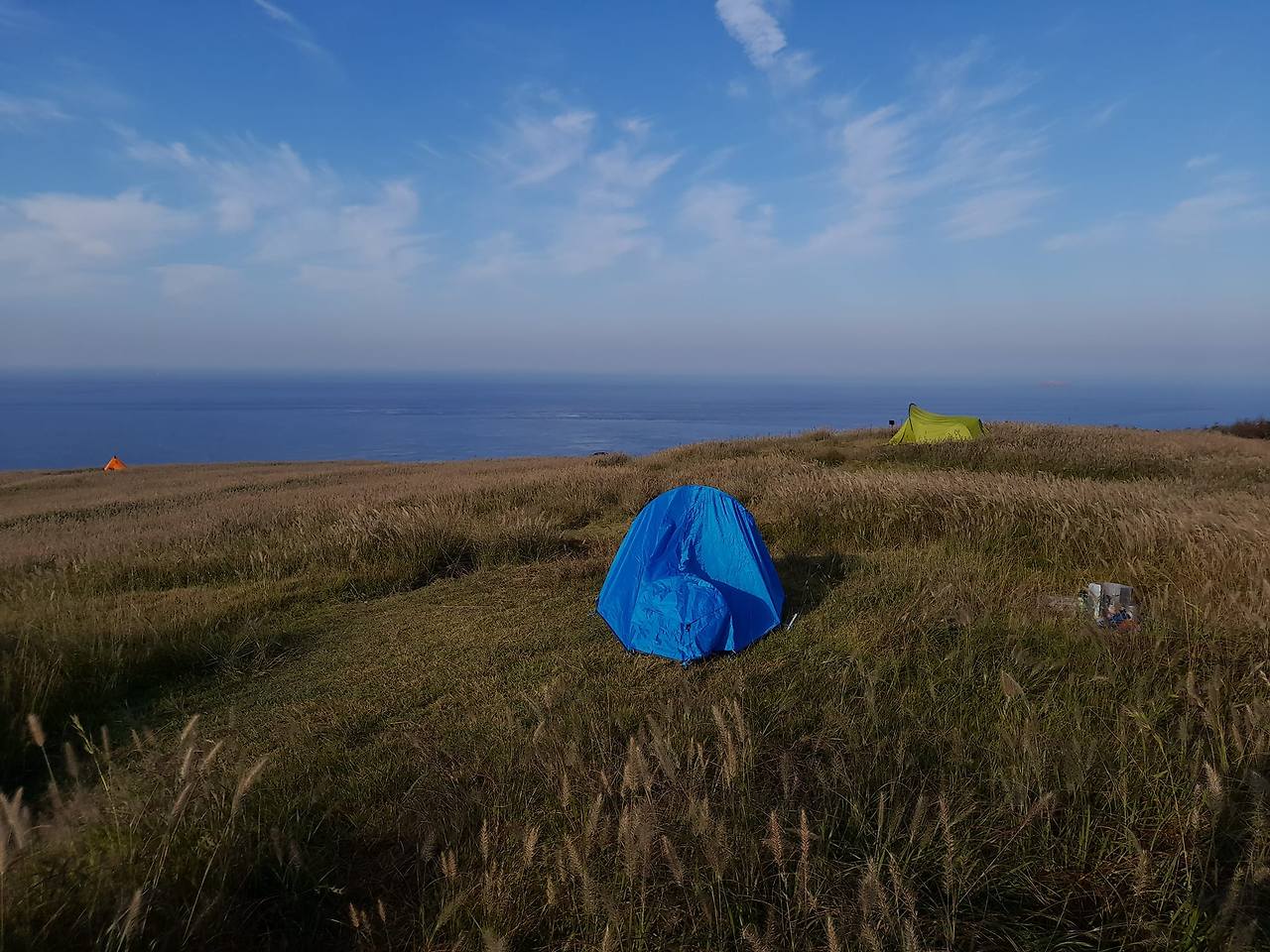 굴업도 낭개머리언덕에 텐트를 칠 때다. 공교롭게 텐트를 치는 1인 여행자들은 나 빼고는 모두 남성이었다. 근처에 텐트를 치는 청년과 말을 섞게 되었다. 그는 내 텐트와 날 번갈아 보더니 이렇게 말했다.