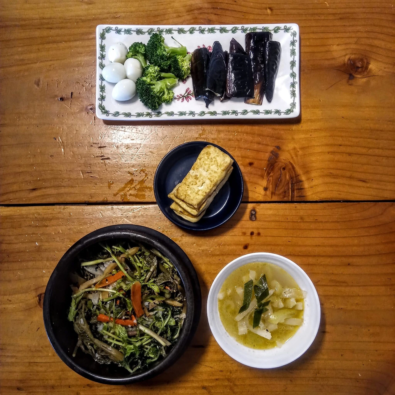 저녁에는 쑥취나물무밥. 쑥달걀말이. 황태뭇국이다. 소화 잘되는 무밥 뭇국으로 결정. 밥에 무 썰어 넣고 쑥도 넣고 냉동고에 넣어둔 말린 취나물도 넣고 밥을 지었다. 반찬 하기 귀찮을 때 밥 지을 때 뭐든 다 때려 넣으면 된다. 말린 나물을 활용하면 금상첨화.