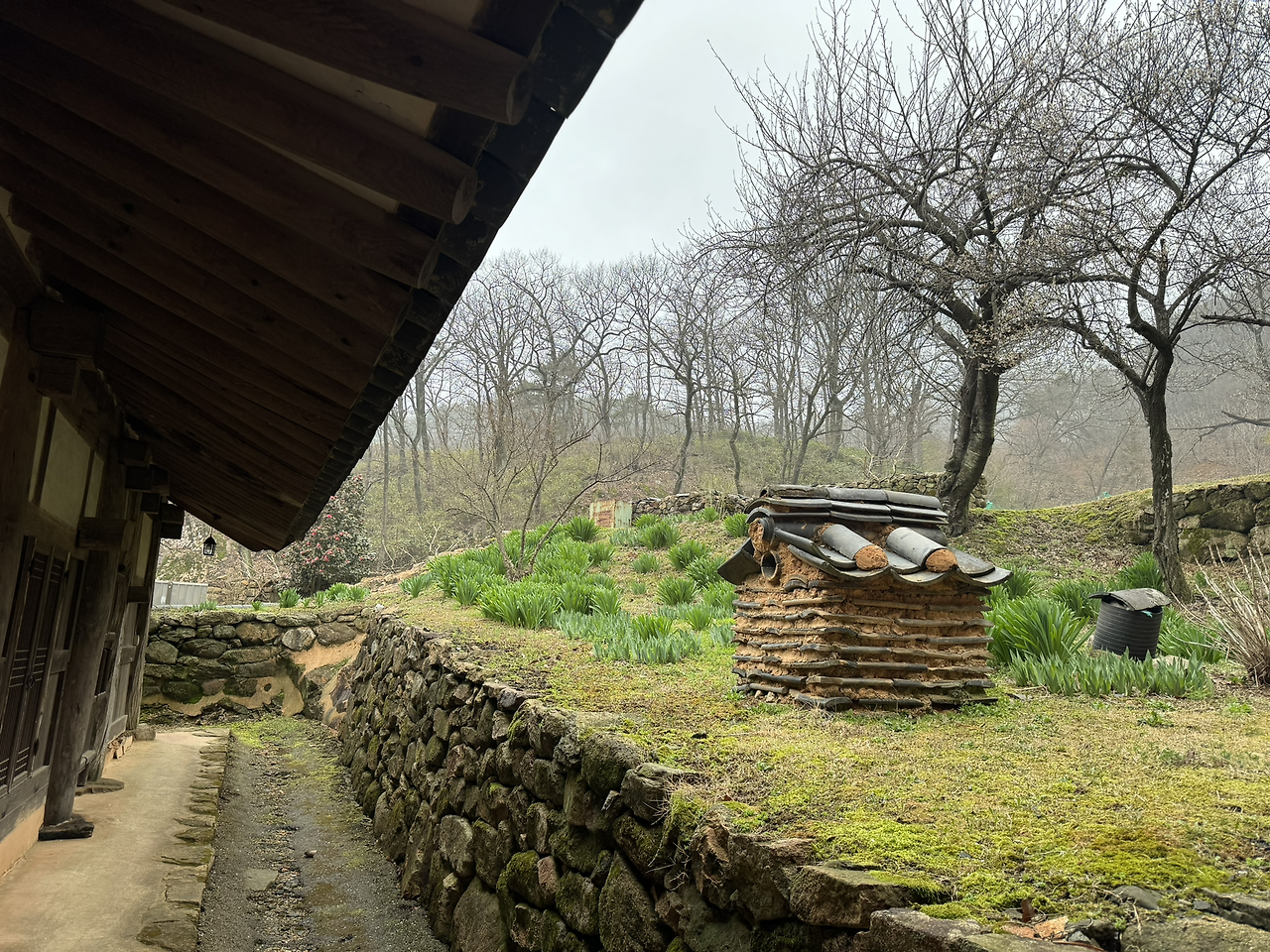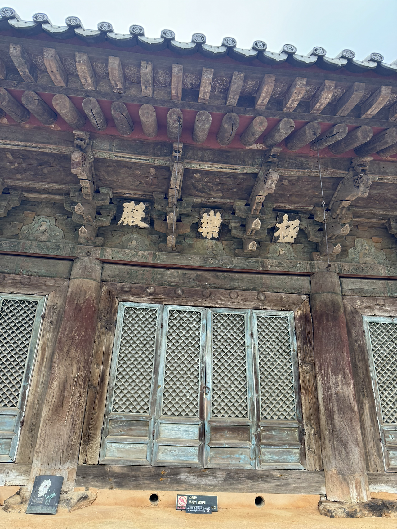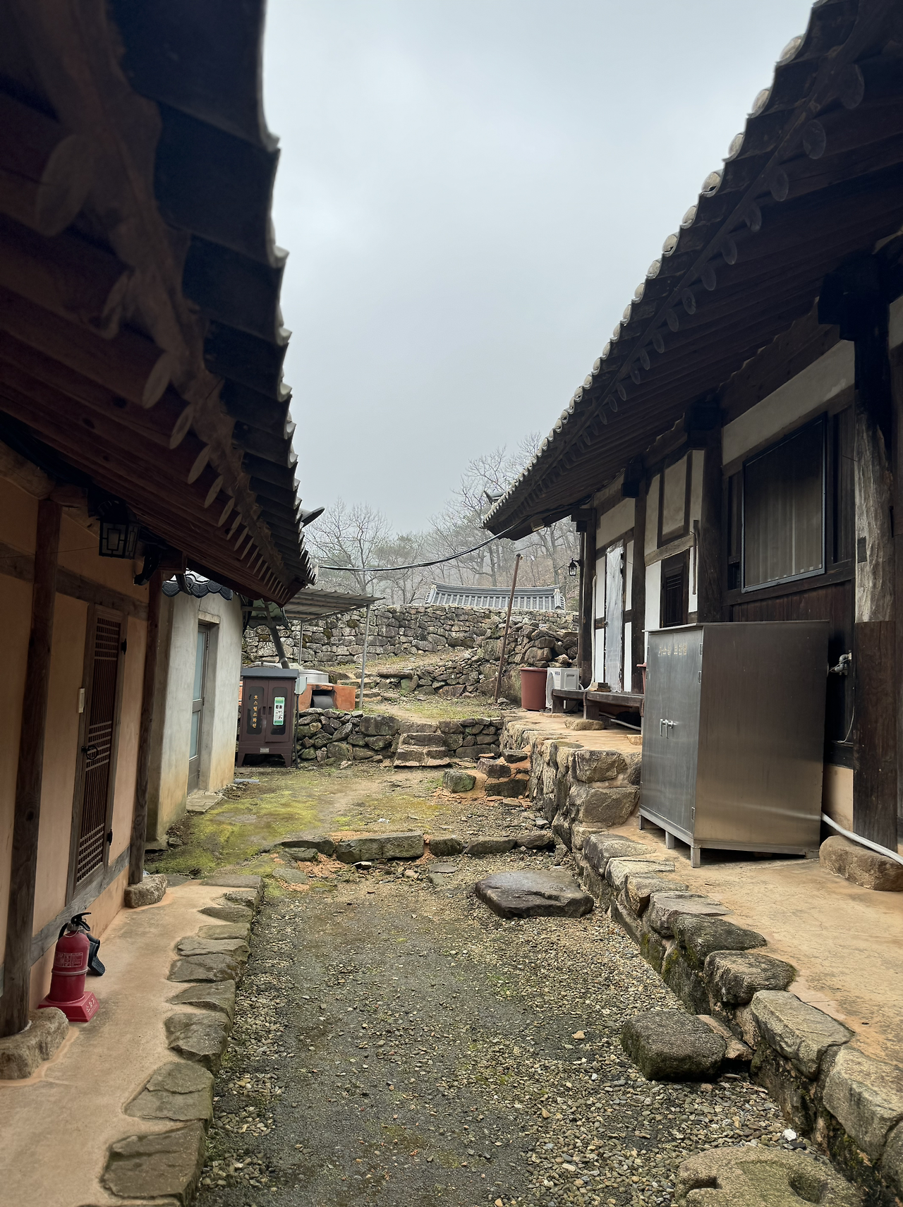 사각의 마당위 흐린 잿빛하늘이 금방이라도 또 비를 뿌릴듯 하지만 오늘은 모든게 내마음색과 하나되어 조용히 가라앉아 있다. 다시 연꽃 연등 문을 나와 경내밖 담벼락을 끼고 돌아본다. 이절엔 아직 그옛날 해우소가 그대로 남아있다. 아마 여기 분들은 저 해우소를 쓰다보다. 그 바로옆에 근대식 화장실도 있긴하지만 왠지 나도 일을 보게되면 예날식 해우소를 사용하게 될것같다. 정겹다.