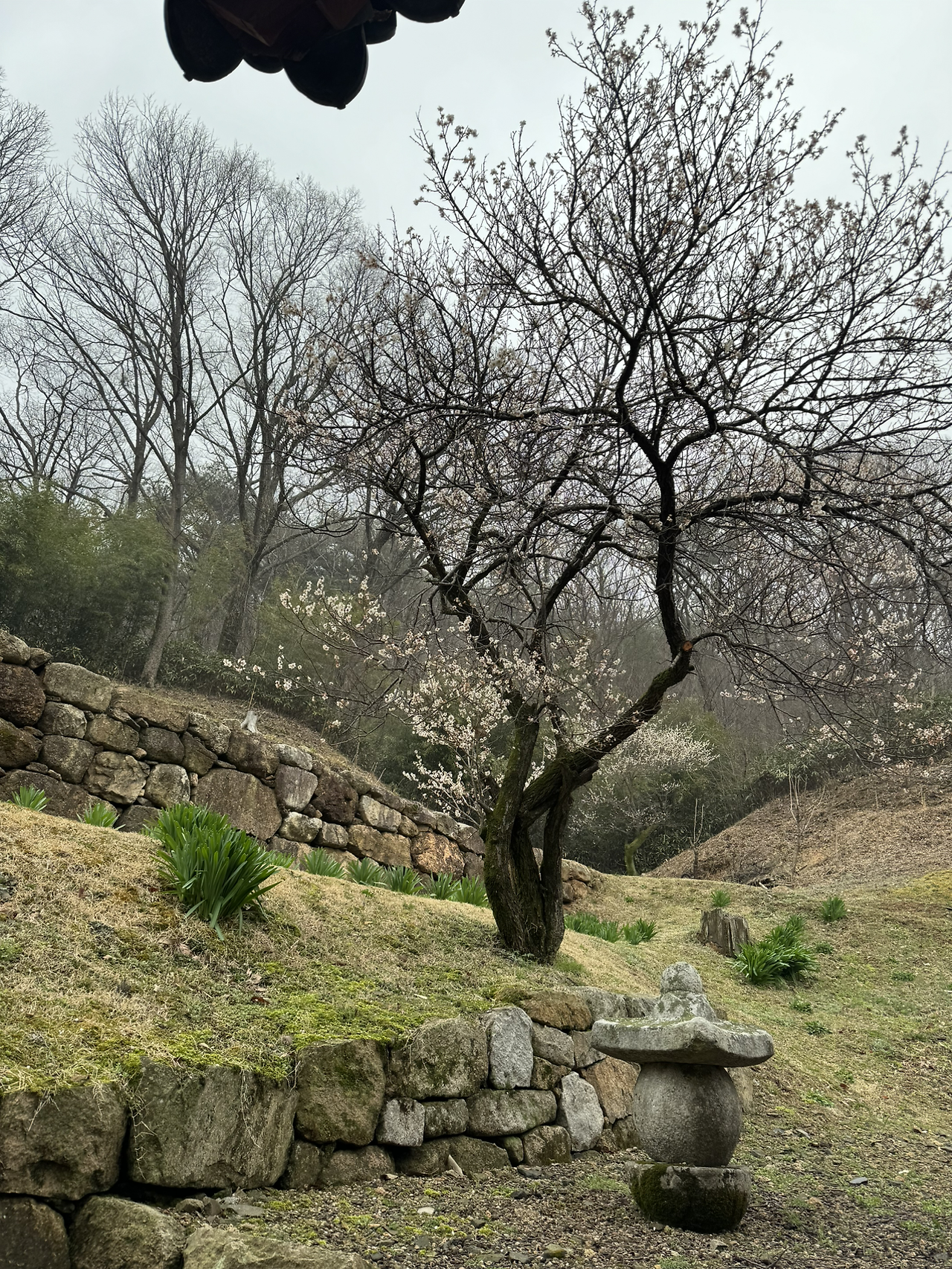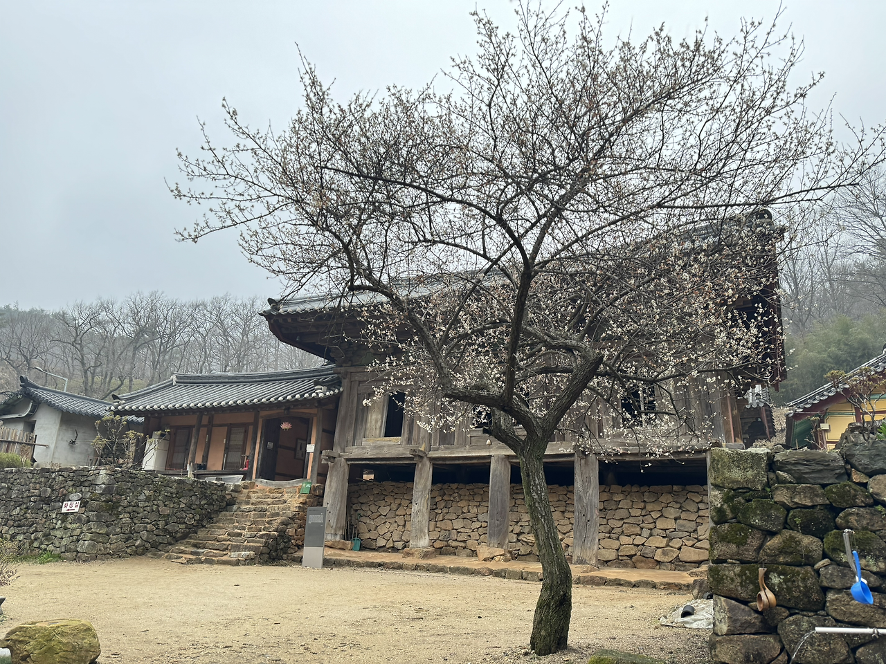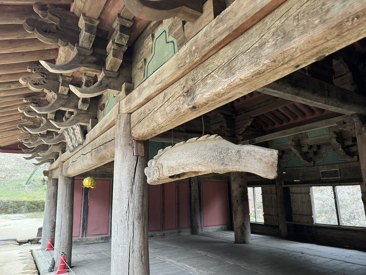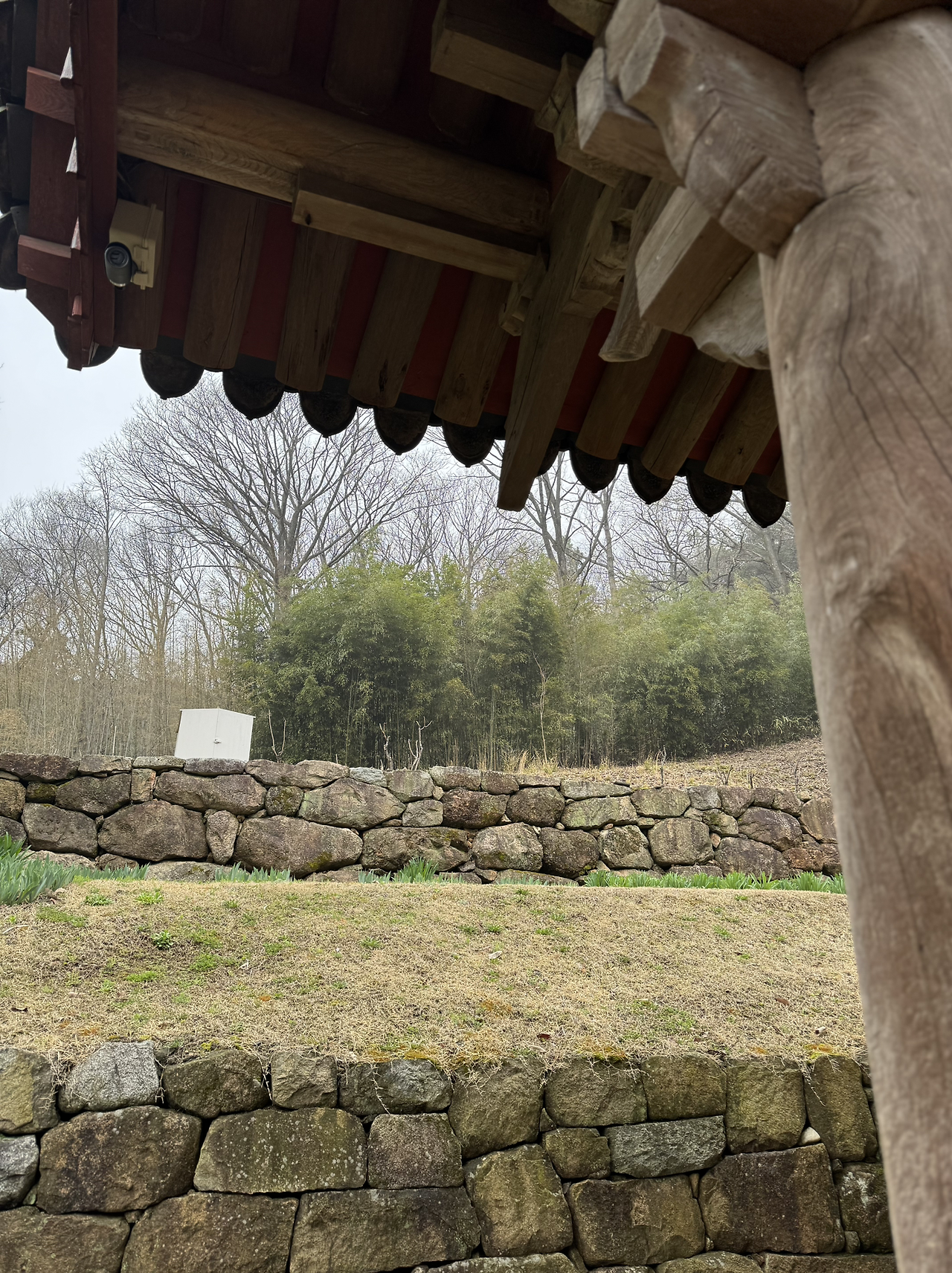 사각의 마당위 흐린 잿빛하늘이 금방이라도 또 비를 뿌릴듯 하지만 오늘은 모든게 내마음색과 하나되어 조용히 가라앉아 있다. 다시 연꽃 연등 문을 나와 경내밖 담벼락을 끼고 돌아본다. 이절엔 아직 그옛날 해우소가 그대로 남아있다. 아마 여기 분들은 저 해우소를 쓰다보다. 그 바로옆에 근대식 화장실도 있긴하지만 왠지 나도 일을 보게되면 예날식 해우소를 사용하게 될것같다. 정겹다.