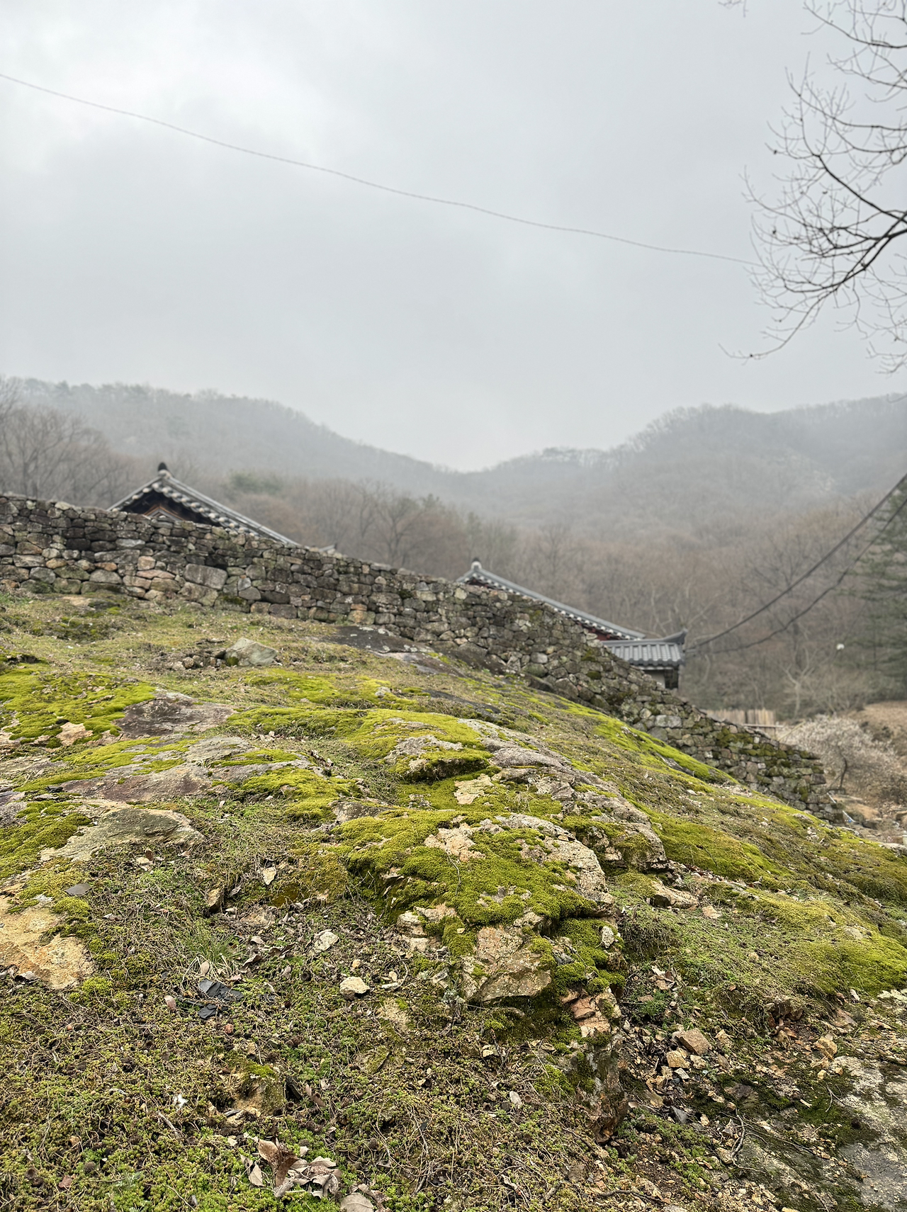 나무는 주로 잡목들. 잘모르지만 참나무 과 거목들이 많은데 밤하늘 잔별같이 가지마다 연초록 새순들이 삐쭉삐쭉 몽글몽글 맺혀있다. 마치 자라는게 보이는듯 하다. 흐린하늘에서조차 봄이 코로 들어온다. 사전에 세뇌된 알려지지않은 천년고찰 가는길, 대통령도 걸어가는길. 이라는 카피 덕에 더 연륜이 느껴지는 봄길.