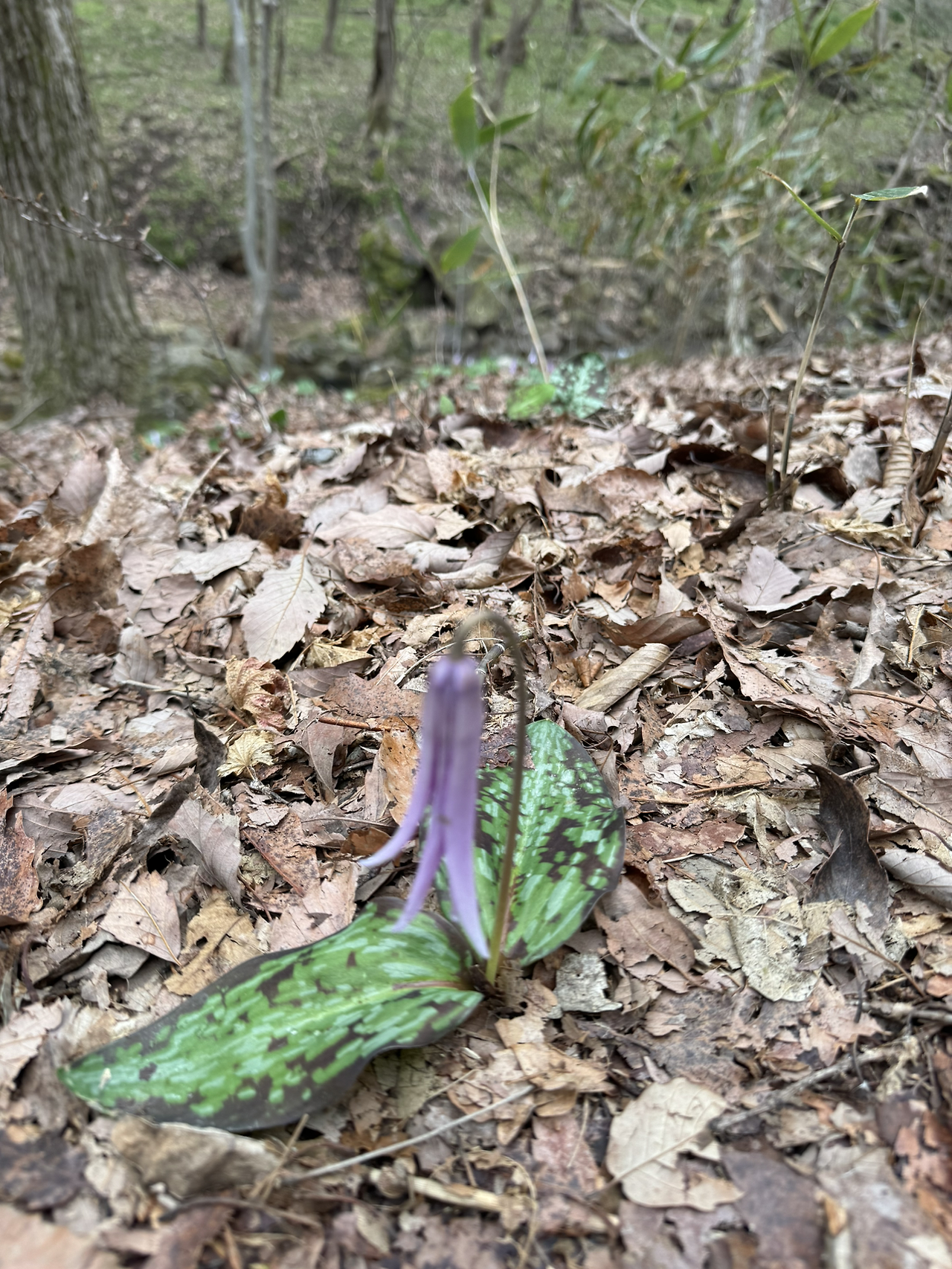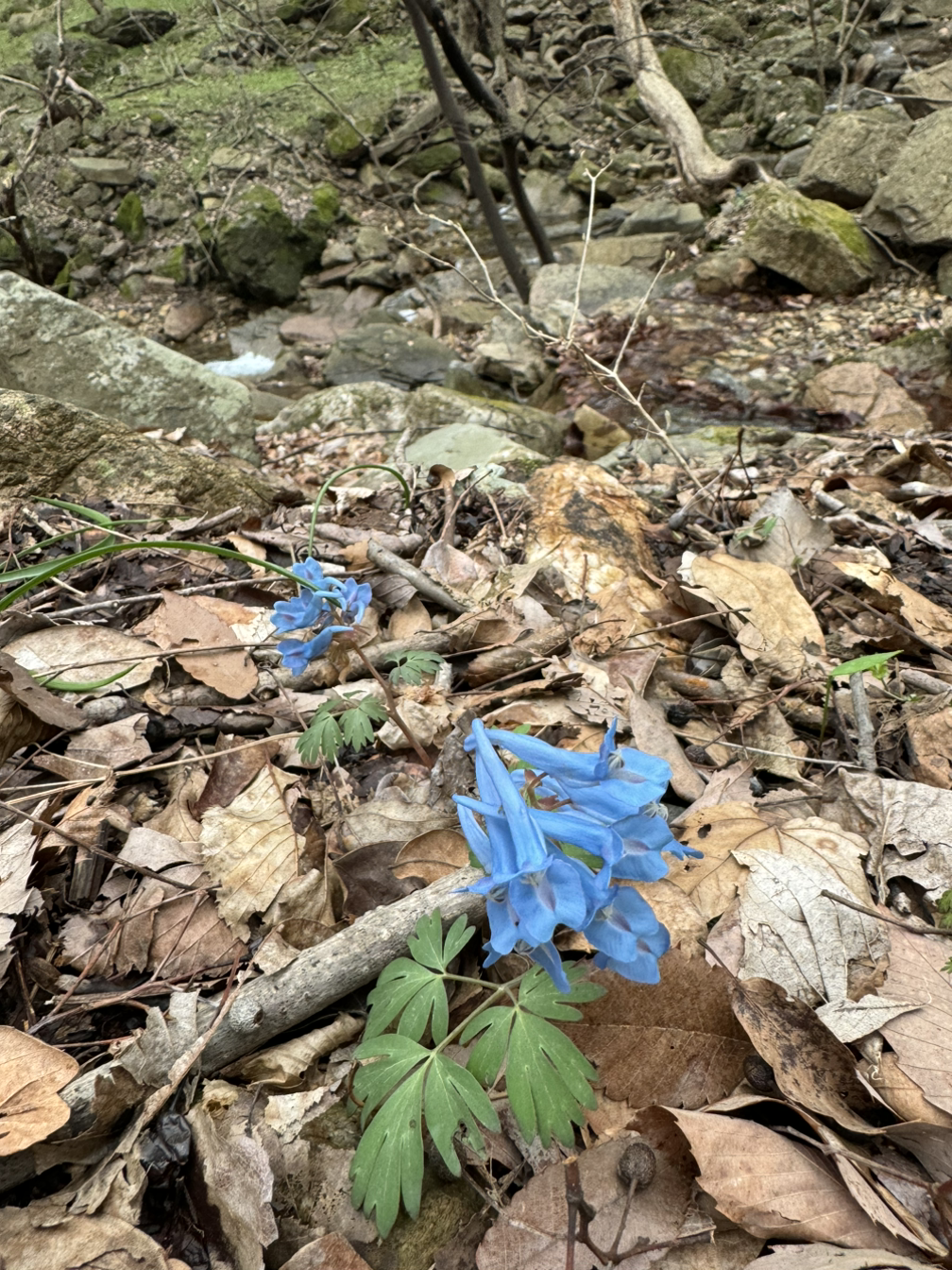 너른 주차장에 차 한대만 덩그마니 서있다. 아직은 겨울이 그대로 남은 커다란 잡목들은 아직 겨울인데 그안 어딘가에 봄이 군데군데 잔뜩 숨어 있다. 땅에도 나무에도 계곡에도 하늘에도…눈이 밤에 적응하면 수많은 별이 서서히 엄청나게 하늘 채우듯 봄기운이 가득하다. 땅에는 병아리새끼같은 새순과 할미꽃 매발톱꽃 같은 고개숙인 백합모양 꽃(찾아보니 얼레지란다)과 서양 파랑색 잔나비 같은 꽃들 뭔가 디즈니 만화같은 꼬마봄이 사방에 깔려있고, 계곡에는 시원하게 흐르는 물소리가 봄소리로 변해있고 천년계곡답게 싱싱한 초록 이끼가 어떤 봄꽃보다 포근한 감촉을 눈으로 느끼게 한다. 기분좋은 벨벳.