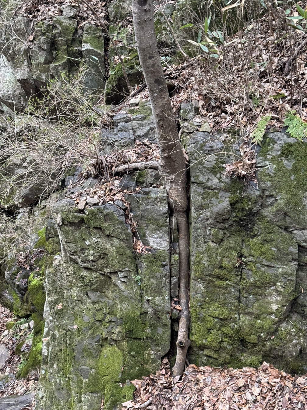 보통 이리 물과 이끼가 많은 대충 북동향 산이면 습하다. 습하거나 음하다. 그런데 이 산길은 습한데도 음하지않고 양기는 아니더라도 엄니 양수 안같은 따스함이 느껴진다. 봄이라 그런가? 이런 기운 느껴지는 계곡길이 흔하지 않은데..