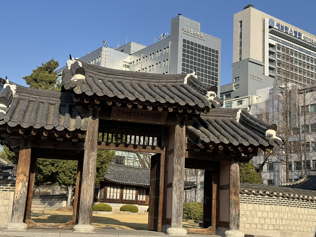 다시 교정을 걷는다. 파란 하늘이 보인다. 오늘따라 유독 하늘이 파랗고 광혜원 기와 검회색이 세월의 깊이를 더하고 그 위로 세브란스 본관의 위용이 어마어마하다. 저 건물 18층인가 거기서 아버님이