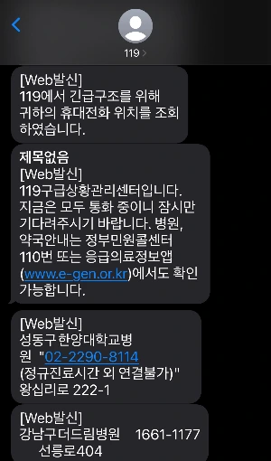 - 119 콜센터에서 사고발생 위치를 확인한 후, 문자로 병원 리스트 보내준다.