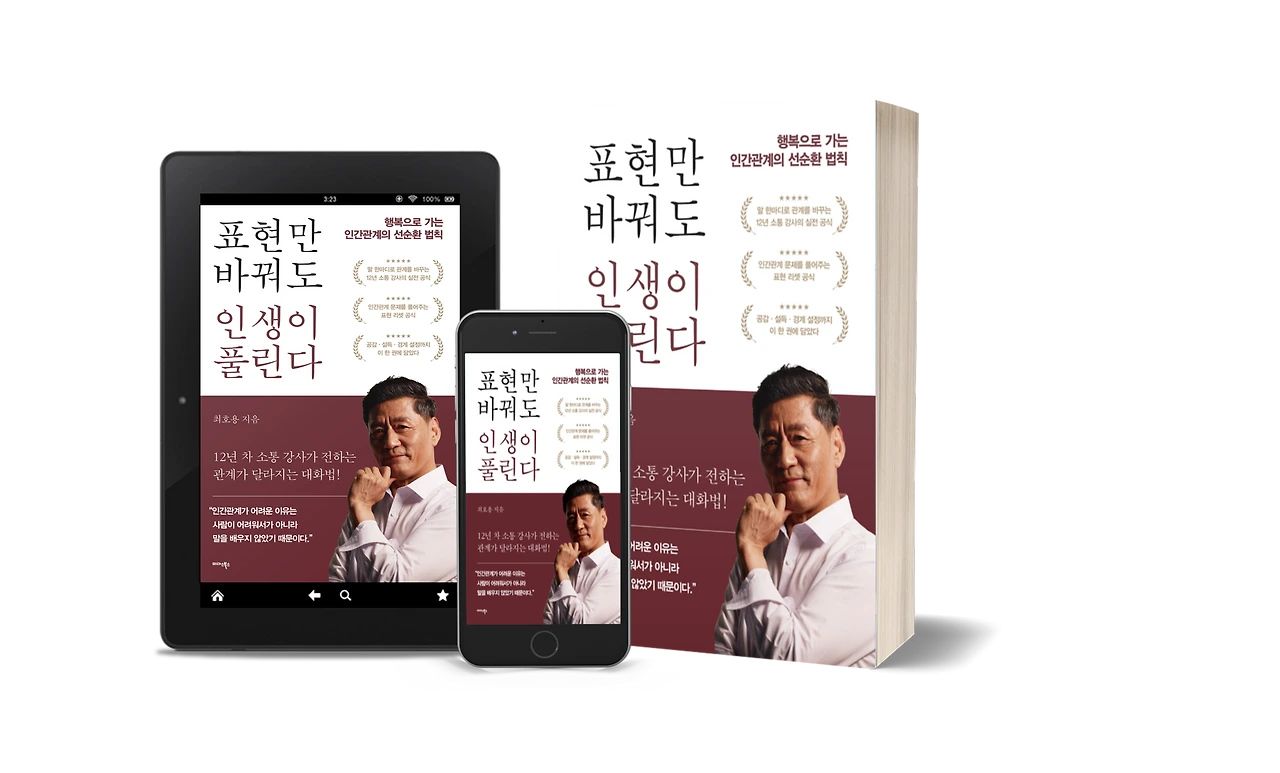 『표현만 바꿔도 인생이 풀린다』는 그래서 저의 강의 연장이자, 제 삶의 철학을 정리한 기록입니다. 강의장 밖에서도 누군가의 관계를 살리고, 소통으로 인해 삶이 조금 더 부드러워지기를 바라는 마음. 그 절실함이 이 책의 모든 내용을 통과하고 있습니다.