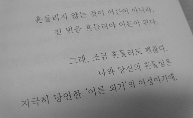 어른이 된 순간 아파도 아프다 말할 수 없고 실수해도 더 이상 용서가 안 된다. 하루종일 일하고 움직여도 지갑은 채워지지 않고 남의 행복과 내 삶을 자꾸 비교하게 되고 남들 앞에서 눈물도 보일 수 없다. 가끔씩 찾아오는 우울한 감정들을 어떻게 해야할지 몰라 당황하는 경우도 적지 않게 있었다.