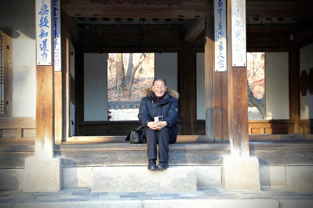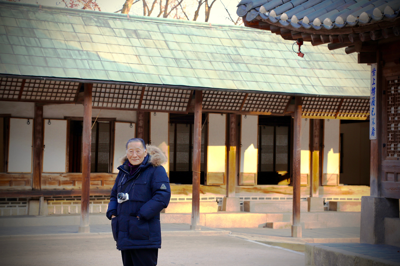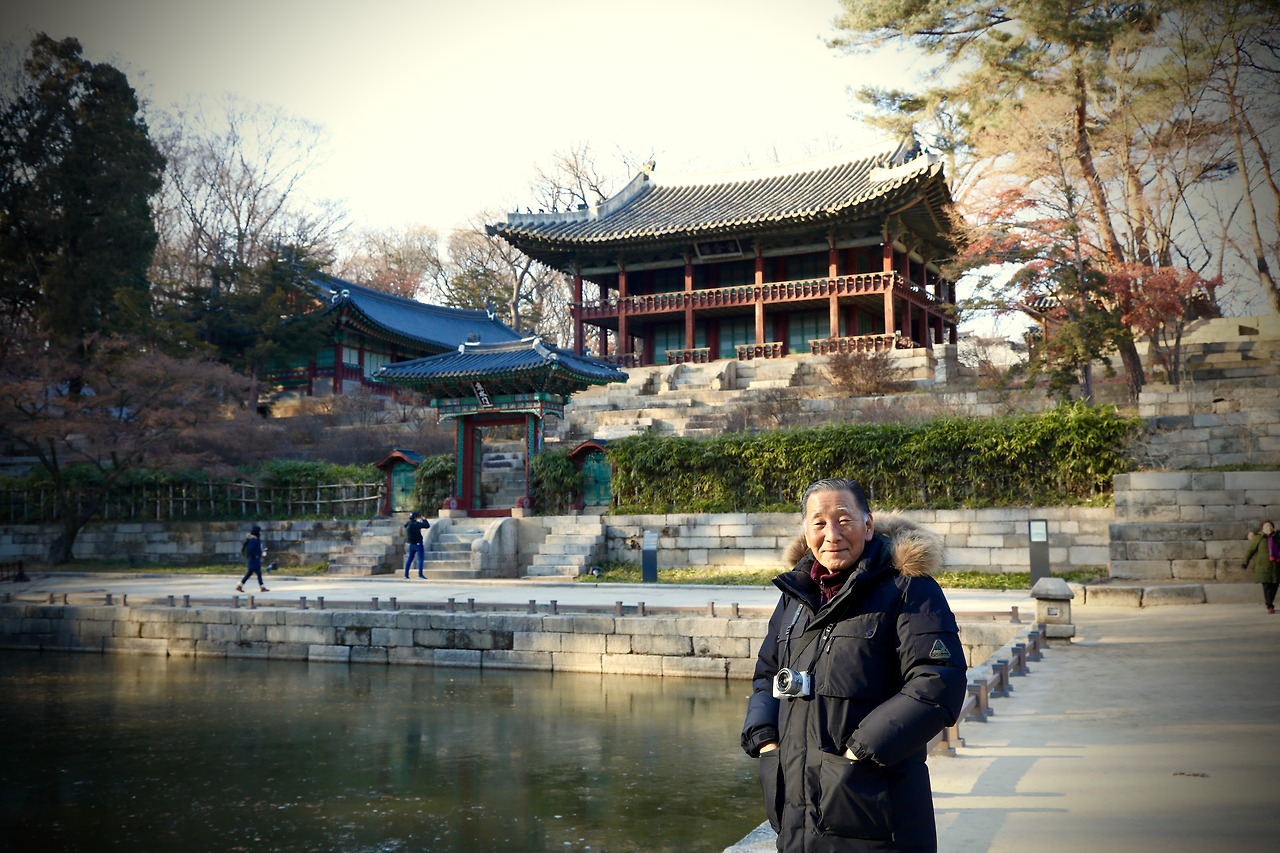 사부님과 나는 왕이 놀았다는 궁 뒤편의 후원을 거닐었다. 사부님은 “내가 그때 태어났어야 하는데…그랬다면 학자가 되어왕을 가르치러 이 궁에 자주 왔겠지…”하시며 안타까워 하셨다. 그래서 난 “사부님 아직 말씀드리지 않은 것이 있는데 사실전 이성계의 46대 자손입니다.” 말했다. 그러자 사부님은 “잠깐 거기 서 봐라. .” 하시며 또 나를 세우셨다. 정성스럽게 구도를 잡고 몇번이나 셔터를 누르는 당신의 모습이 어찌나 천진난만해 보이는지 나도 갑자기 사부님이 찍고 싶어졌다. 그날 궁의풍경은 거의 찍지 않았지만 사부님의 사진을 몇 장 찍었다.