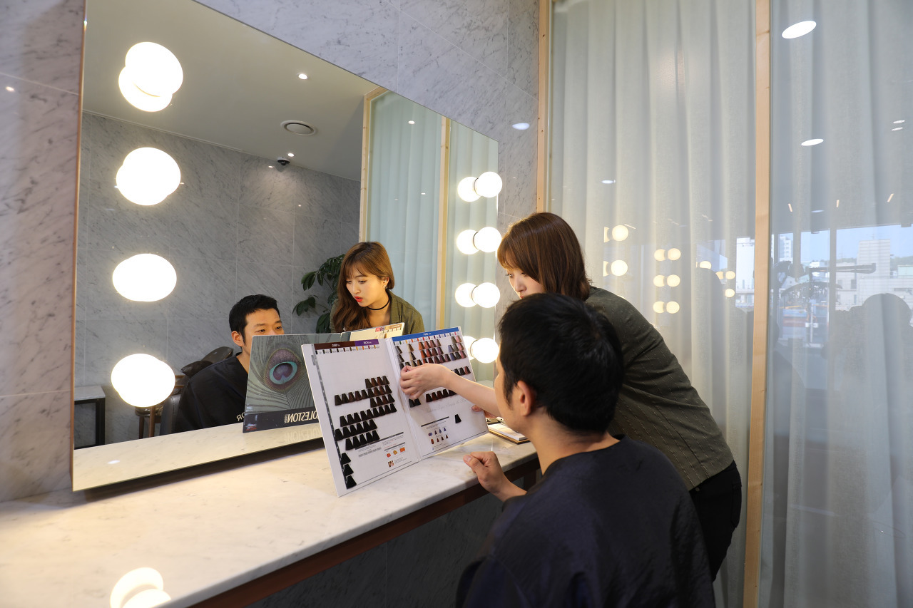 그리고 저희가 사용하는 헤어제품들은 모두 세계적으로 유명한 고퀄리티 제품이예요. 고객이 신뢰할 수 있게 제품을 전시해서 '투명함'과 '정직함'을 강조하고 있습니다.