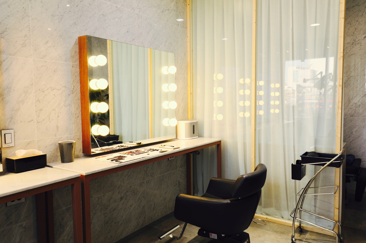 세번째 아버의 대표적인 공간은 프라이빗 메이크업 룸(Private Room & Make Up)이예요. VIP고객이나 연예인은 분리된 공간에서 특별 서비스를 받을 수 있고, 메이크업을 하시는 고객은 좀 더 전문적인 공간에서 수월하게 받을 수 있어요.