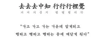 ‘가고 가고 가다 보면 알게 되고, 행하고 행하고 행하다보면 깨닫게 된다’는 의미다.
