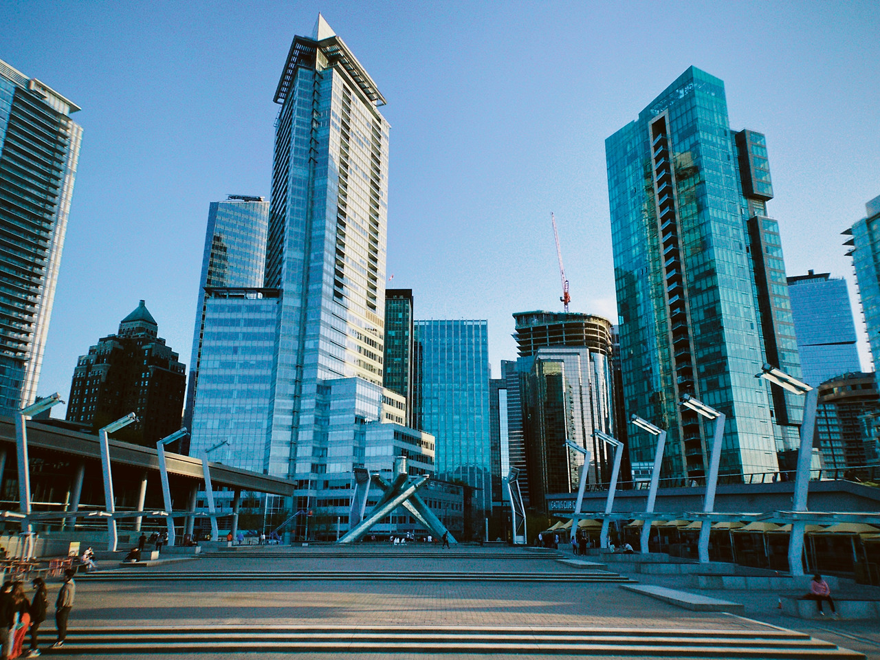 호텔에 도착해서 체크인을 하며 오후 8시쯤 금쪽 같은 내 짐이 올 수도 있으니 확인되면 연락을 바란다고 부탁했다. 그 후 방으로 올라갔다. 13층이었고 나름 시티뷰를 자랑했다. 도시 숲에 둘러싸인 기분...괜찮은데? 뉴욕에 살면 이런 기분일까나? 근데 또 막상 시티뷰를 보고 있다 보니 조금은 답답한 느낌도 들었다. 아예 층수가 높아 위에서 내려다보는 게 아니라면 중간에 있는 건 조금 애매했다. 그래도 호텔은 전체적으로 만족. 화장실도 널찍널찍하고 시설도 깨끗하고! 우선 짐을 풀고 조금 쉬다가 캐나다에 사시는 엄마의 오랜 친구(여기서는 캐나다 이모라고 하겠다.)이자 우리 가족과도 막역한 이모를 만나서 저녁을 먹기로 했다. 호텔 로비에서 어른들이 회포를 풀 동안 나는 호텔 앞에 'Coal Harbour' 구경을 하러 갔다. 시간이 더 많았다면 아침에 이곳에 나와 자전거도 타고 조깅을 하고 싶을 정도로 너무 좋았다. 꼭 관광을 하지 않더라도 그냥 커피 한 잔 들고 돌아다니며 하루를 보내고 싶다는 생각도 들었다.