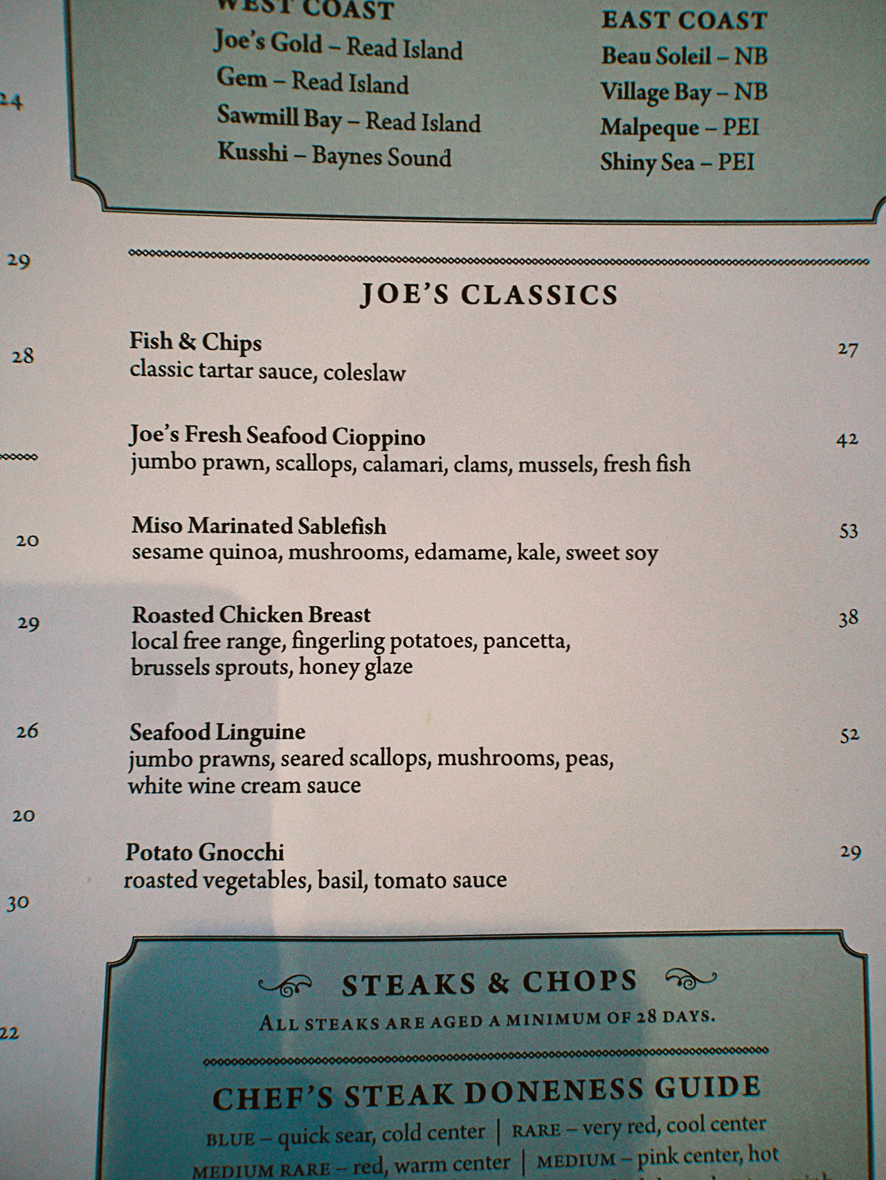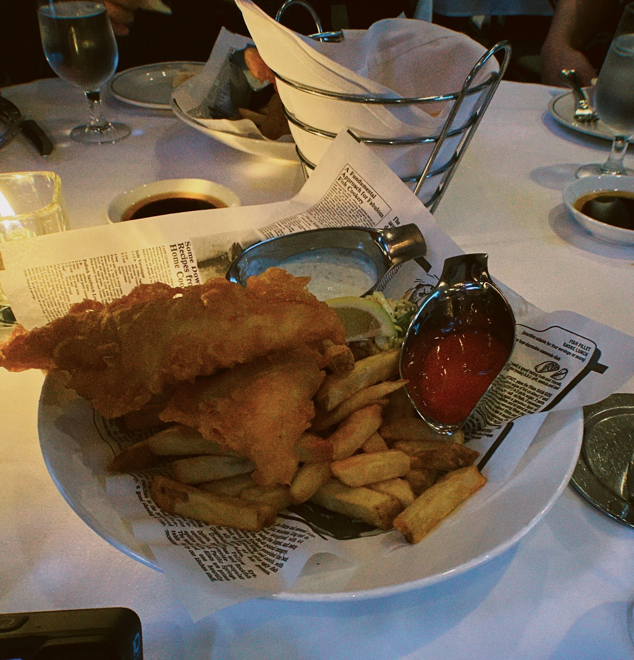 누나도 퇴근을 하고 우리가 있는 곳으로 왔다. 누나도 정말 오랜만에 만나는 거라 우리 가족과 인사를 나누고 이모네와 다 같이 밥을 먹으러 갔다. 'Coal Harbour'를 구경하면서 근처에 ‘Cactus Club Cafe’를 가려고 했으나 웨이팅만 1시간...다른 곳을 가기로 결정! 누나가 맛있는 해산물 요릿집이 있다고 해서 그곳으로 발걸음을 옮겼다. ‘Joe Fortes Seafood & Chop House’라는 곳이었다. 이곳도 사람이 많았지만 다행히 거의 바로 들어갈 수 있었다. 동그란 테이블에 앉아서 음식을 시키는데 앞서 말했듯 나는 이미 넋이 나간 상황. 컨디션은 창밖 명도와 함께 어두워져 갔다. 앞에 촛불의 춤을 보고 있자니 정신이 더 혼미해졌다. 음식이 너무 맛있었음에도 불구하고 내 상태 때문에 100% 느낄 수 없음이 아쉬웠다. 가격대가 조금 있는 식당이지만 시간적, 금전적 여유가 있다면 한 번 가보는 것도 나쁘지 않다고 생각한다. 개인적으로 피시 앤 칩스에서 칩스가 너무 맛있었다. 가끔씩 어릴 때 뉴질랜드에 살며 먹었던 음식들이 그리울 때가 있다. 그중 하나가 늘 수영장에서 먹던 감자튀김이었다. 파도풀이 있는 수영장에서 감자튀김을 팔았었는데 그게 너무 맛있었다. 이곳의 감자튀김에서 그때 그 맛이 느껴져서 어린아이처럼 기쁘게 먹었다.