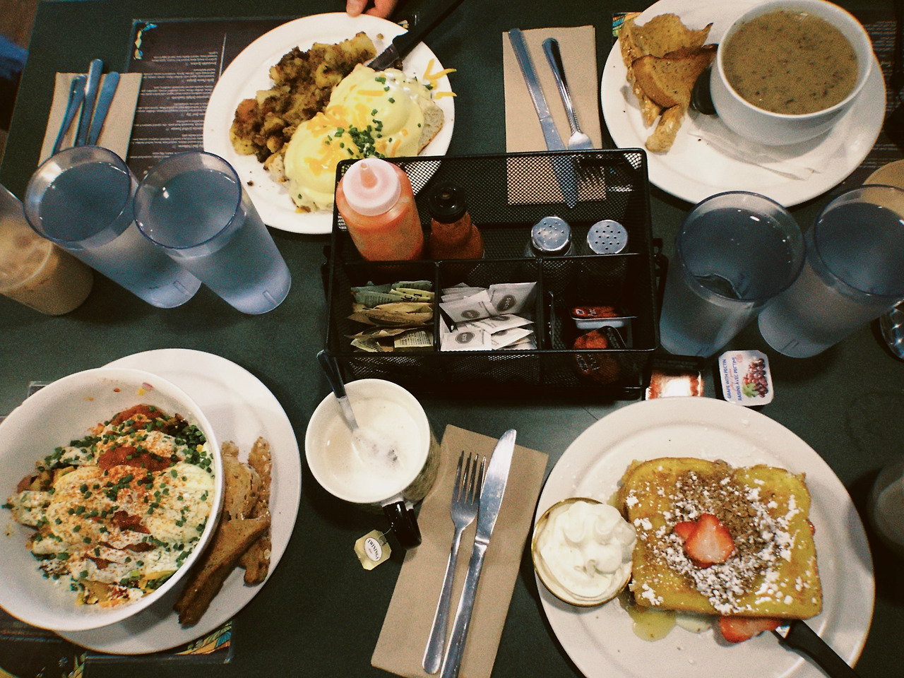 누나 픽업해서 드디어 본격적으로 출발. ‘재스퍼(Jasper)’까지는 한 번에 가기가 어렵기 때문에 ‘캠룹스(Kamloops)’에 경유해서 브런치를 먹고 가기로 했다. 오전 7시 좀 넘은 시간에 출발해서 약 354km를 달려 오후 1시 20분쯤 도착했다. ‘캠룹스’에서는 ‘Hello Toast’라고 브런치 맛집이 있어서 우리도 도전! 브런치 전문 집이라 오후 2시 반까지밖에 영업을 하지 않았다. 식당 앞에 공용주차장이 있어서 주차하고, 맛집답게 줄이 있어서 우리도 이름을 등록하고 기다렸다가 들어갔다. 내가 찾은 집이었지만 메뉴는 찾지 않았어서 직원에게 추천을 받아서 메뉴를 주문했다. 브런치 식당답게 일단 커퓌부터 주고 시작. ‘이게 브런치야?’ 할 정도로 메뉴 구성이 상당했다. 그냥 런치 수준인데? 양도 많고 맛도 있기 때문에 우리 같이 밴쿠버→재스퍼 가시는 분들은 ‘캠룹스’에 경유해서 드시고 가는 거 뤠커맨드!