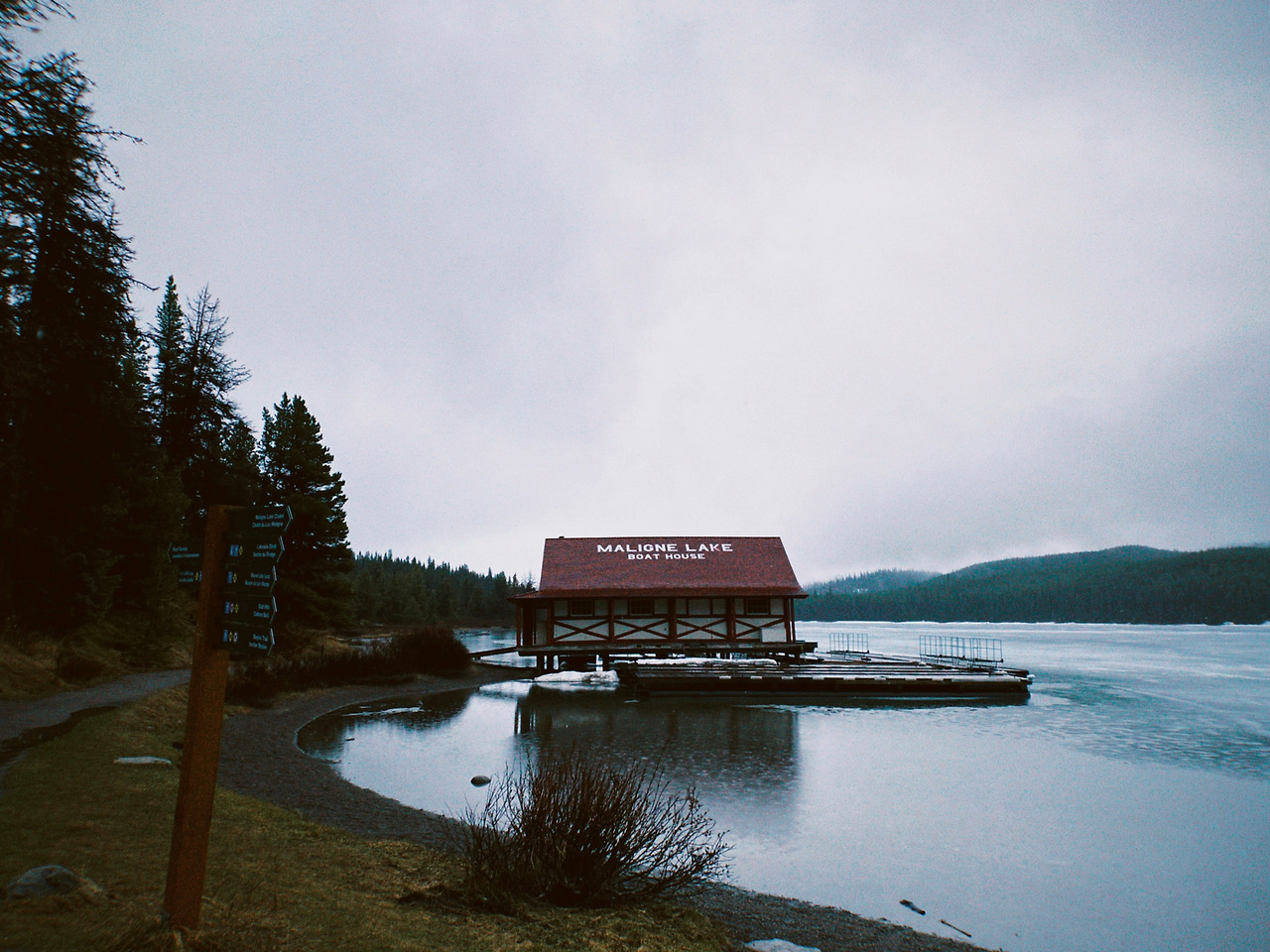 다음으로 간 곳은 22km 거리에 있는 ‘말린 호수’였다. ‘말린 호수’는 확실히 덜 말랐ㄷ..크흠 ‘말린 호수’는 확실히 ‘메디신 호수’에 비해 웅장하고 아름다웠다. 아직 날씨가 추워서 호수가 다 얼어있었고, 저 멀리 산들도 안개에 가려져서 잘 보이진 않았다. 원래 이곳에 ‘The View’라고 하는 식당이 있어서 이곳에서 점심 식사를 하고 싶었으나 성수기에만 여는 듯했다. 한국에서 미리 알아볼 때도 계속 영업중단으로 표시되어 있었다. 호수 근처에 눈들도 있어서 5월에 눈도 보고 호수에서 사진도 많이 남겼다. 이때까지만 해도 조금 아쉬움이 남았었다. 한국에서 미리 봤던 호수 사진들에는 햇빛이 따악, 호수가 쫘악, 저 멀리 산이 퐈악! 근데 날씨 탓인지, 시기 탓인지 기대했던 모습이 아니었어서 조금은 아쉬웠다.